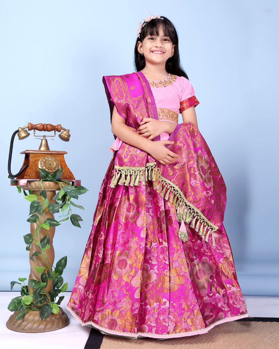 DESIGNER JACQUARD WEAVING WORK KID’S LEHENGA CHOLI WITH DUPATTA PINK