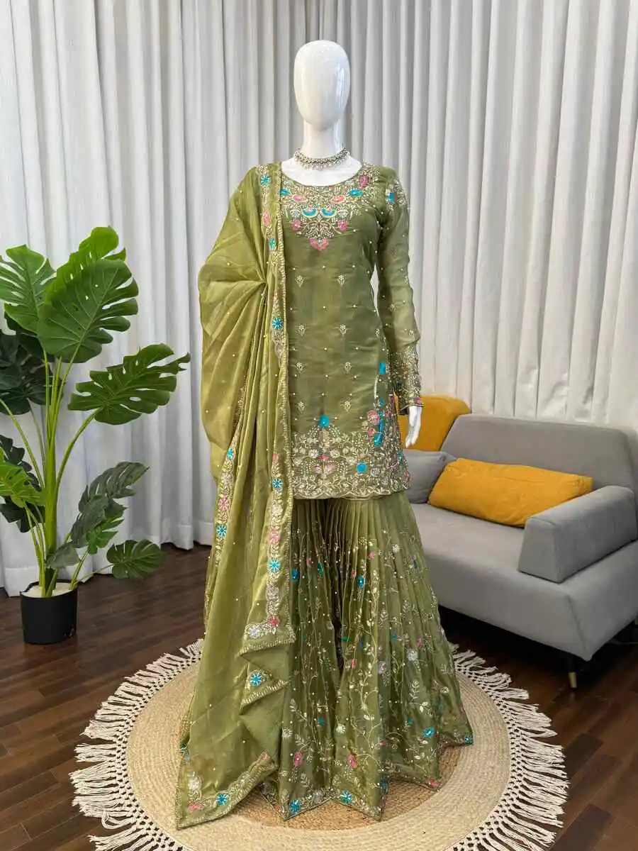 SHARARA : HEAVY CHINON SILK WITH SEQUENCE EMBROIDERY WORK