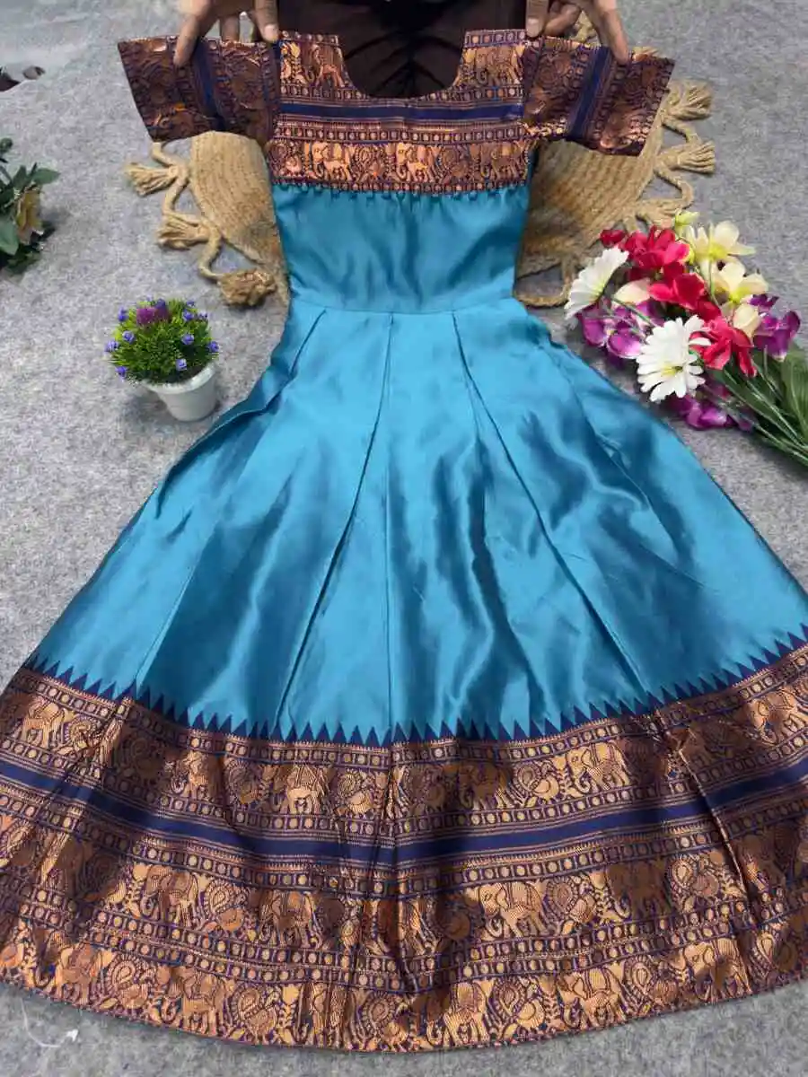 DESIGNER LICHI SILK JACQUARD WORK BORDER WORK KID’S GOWN RAMA