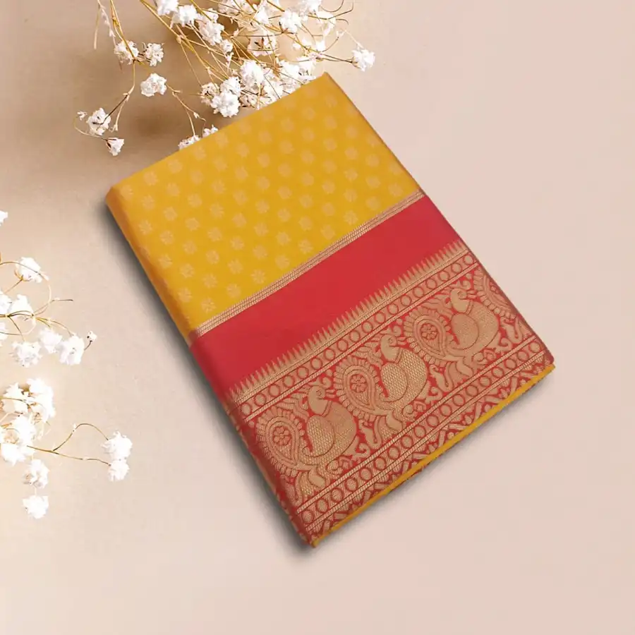 DESIGNER LICHI SILK JACQUARD WORK SAREE WITH UNSTITCHED BLOUSE YELLOW