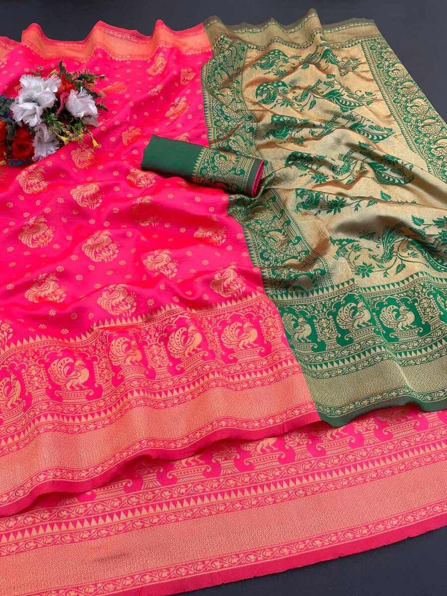 DESIGNER LICHI WORK WEAVING WORK SAREE WITH UNSTITCHED BLOUSE PINK