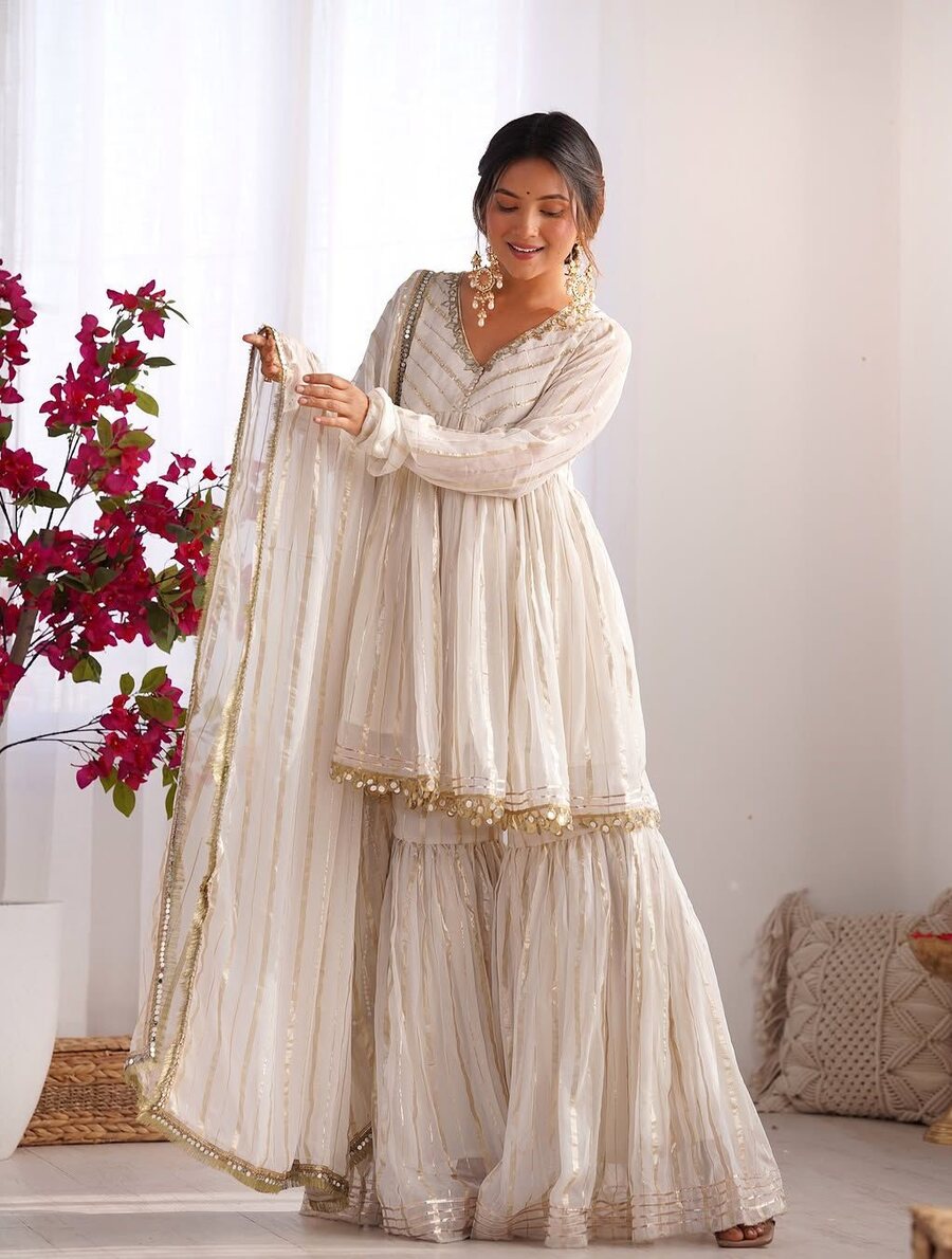 SHARARA FABRIC : HEAVY FAUX GEORGETTE WITH FULLY FLAIR