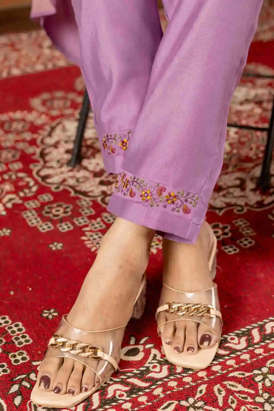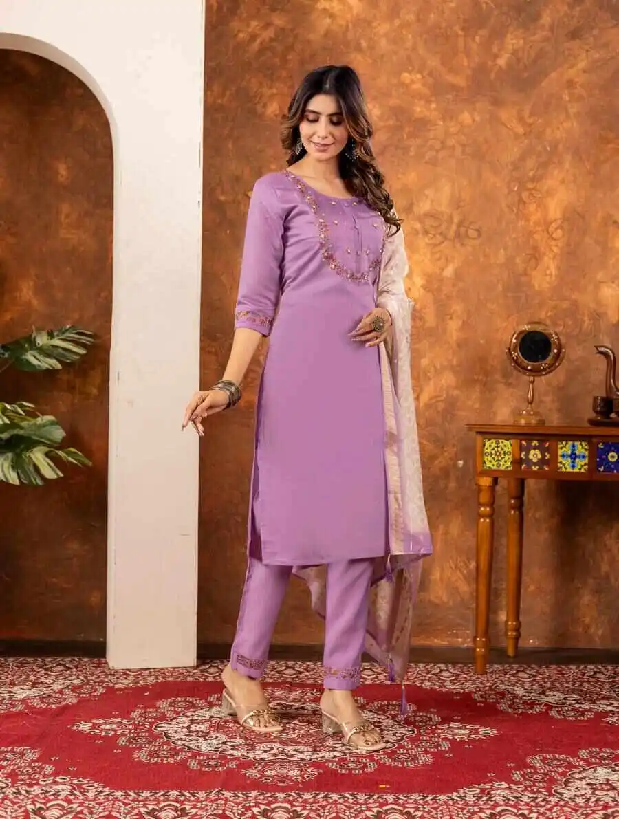 DESIGNER MARINA SILK MULTI EMBROIDERY THREAD WITH HAND WORK TOP BOTTOM WITH DUPATTA LAVENDER