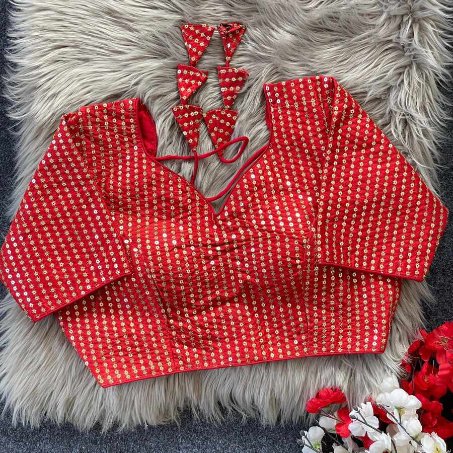 DESIGNER MONO BANGLORI MULTI SEQUENCE AND ZARI WORK STITCHED BLOUSE RED