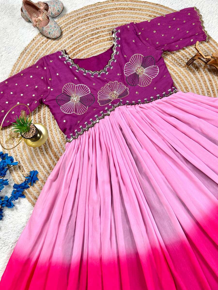 DESIGNER MUL MUL COTTON EMBROIDERY THREAD WORK GOWN PINK