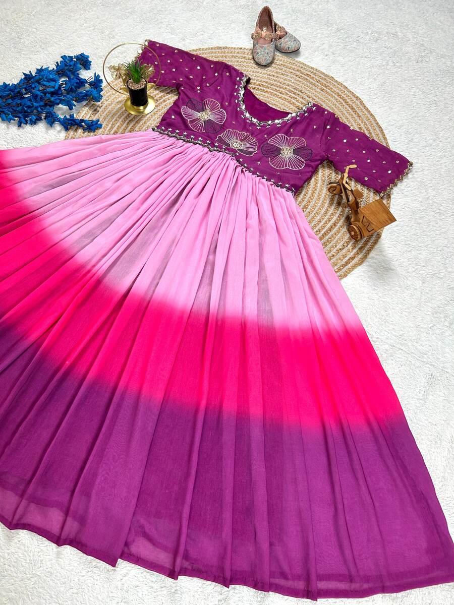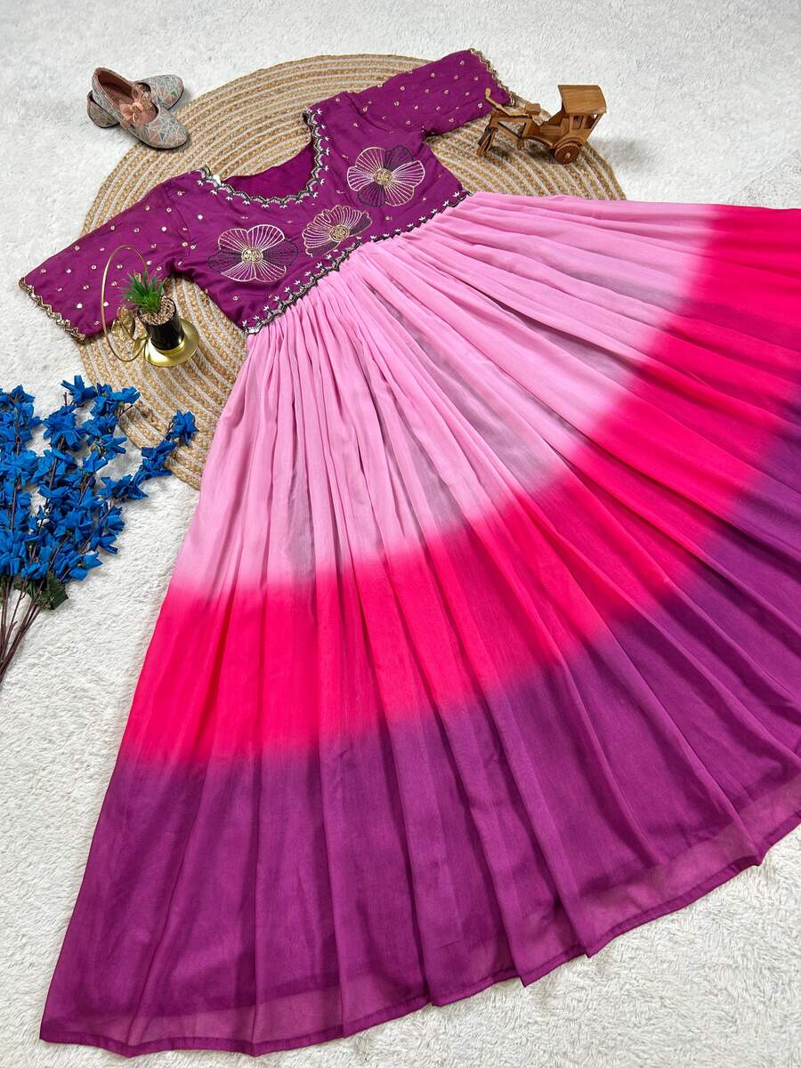 GOWN FABRIC :- HEAVY FAUX GORGETTE EMBROIDERY MIROR WORK IN FRONT