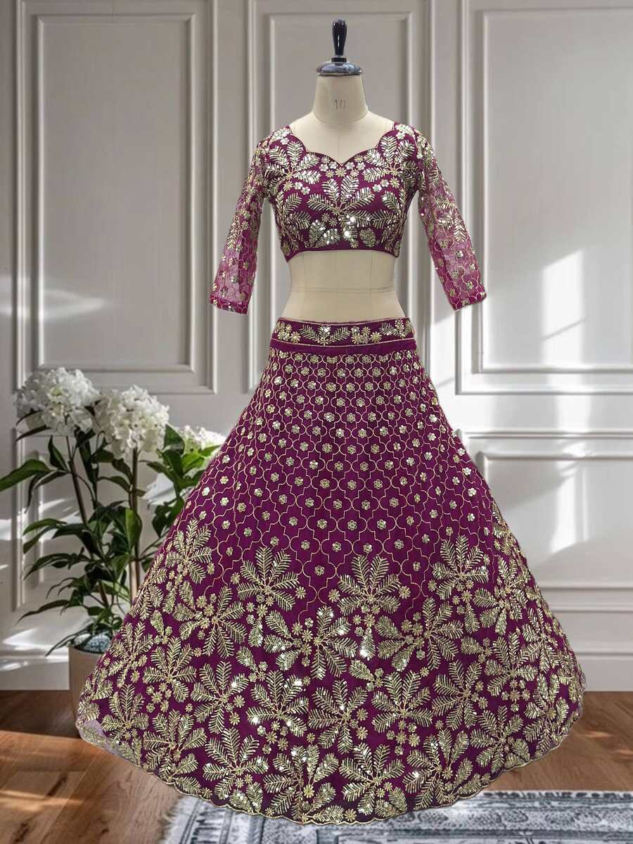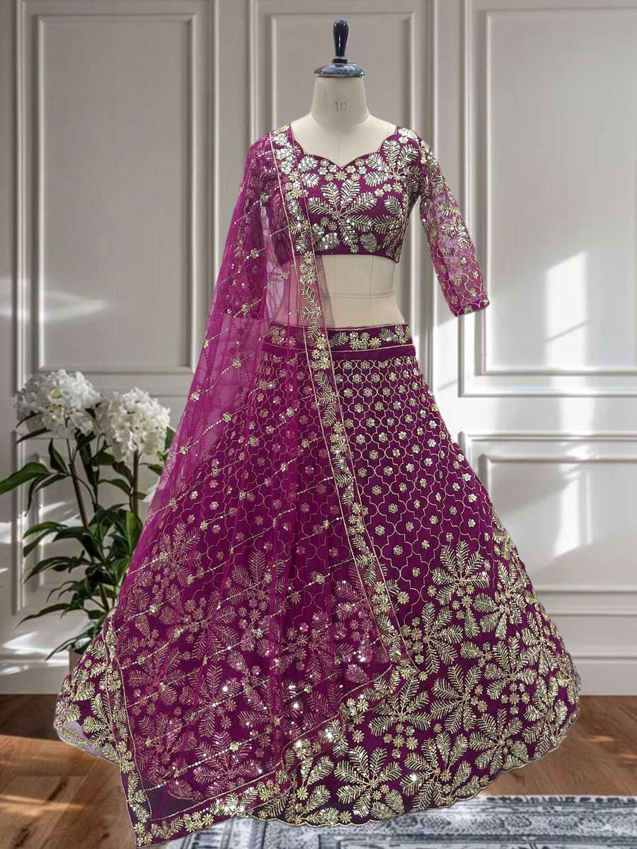 DESIGNER NET EMBROIDERY SEQUENCE DESIGN WORK LEHENGA CHOLI WITH DUPATTA PINK