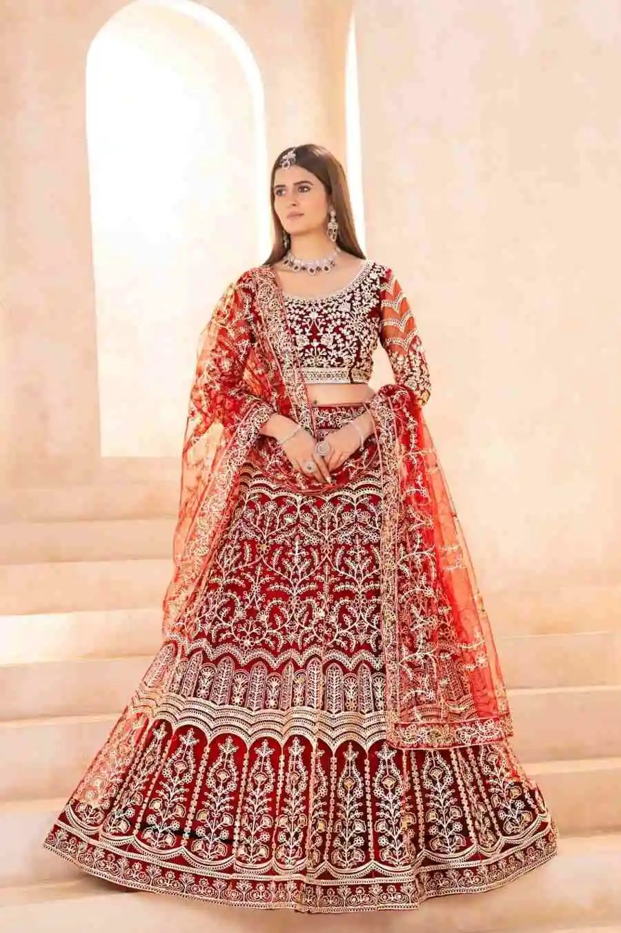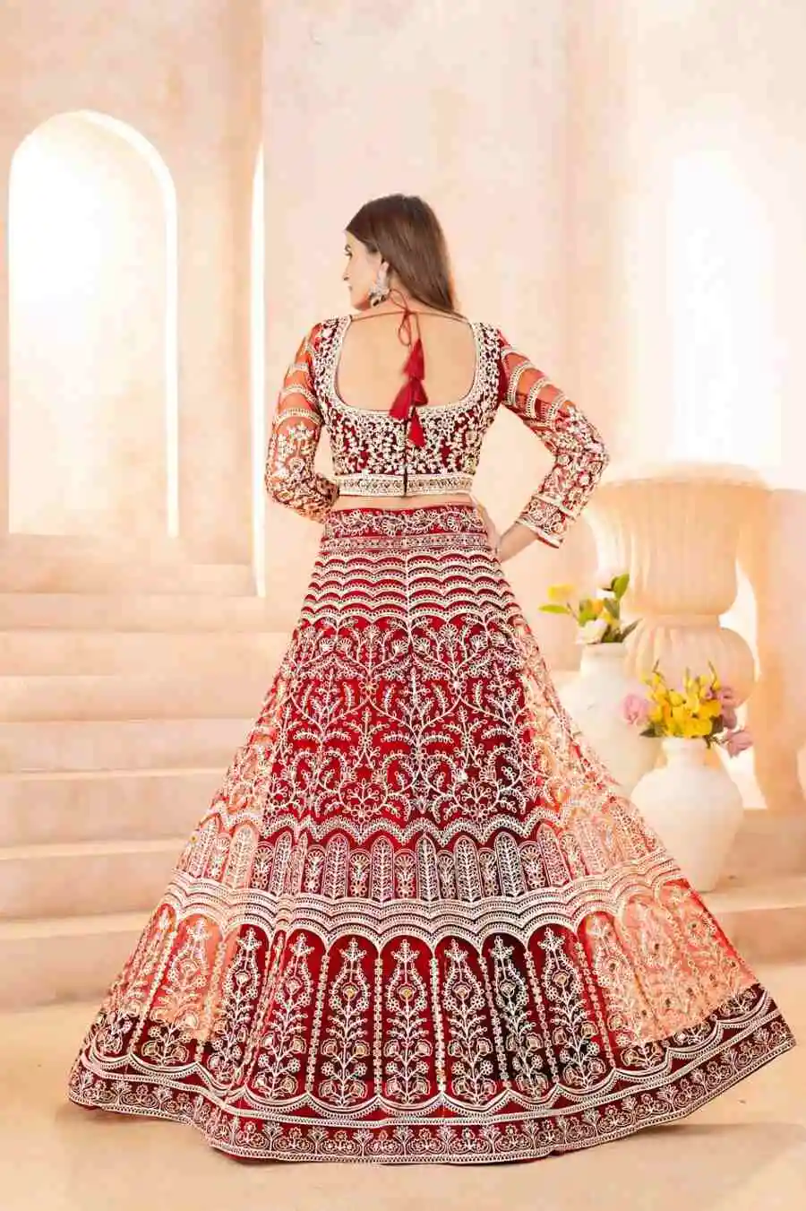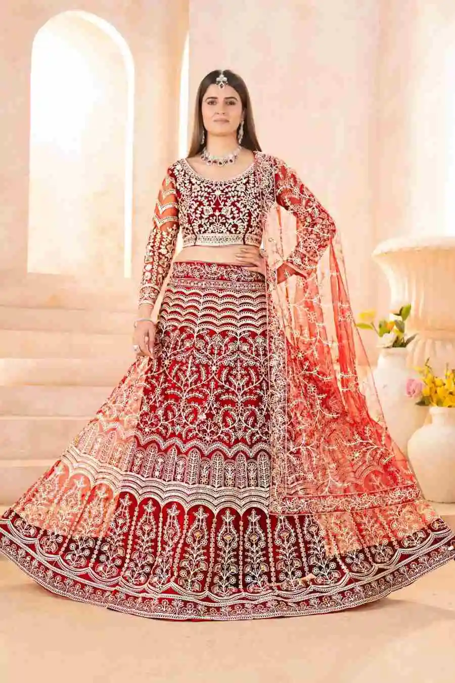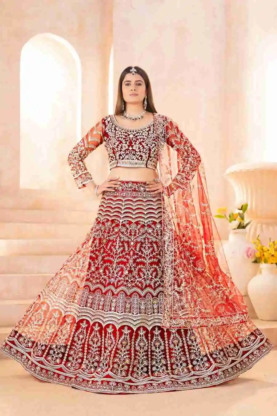 DESIGNER NET EMBROIDERY SEQUENCE DESIGN WORK LEHENGA CHOLI WITH DUPATTA RED
