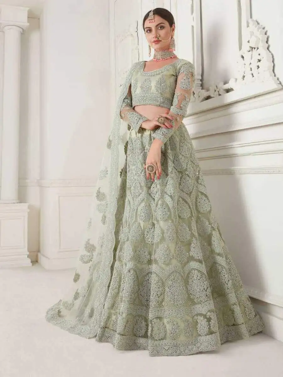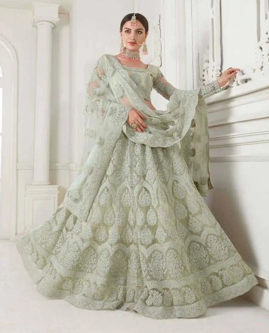 DESIGNER NET EMBROIDERY WORK LEHENGA CHOLI WITH DUPATTA OFF WHITE