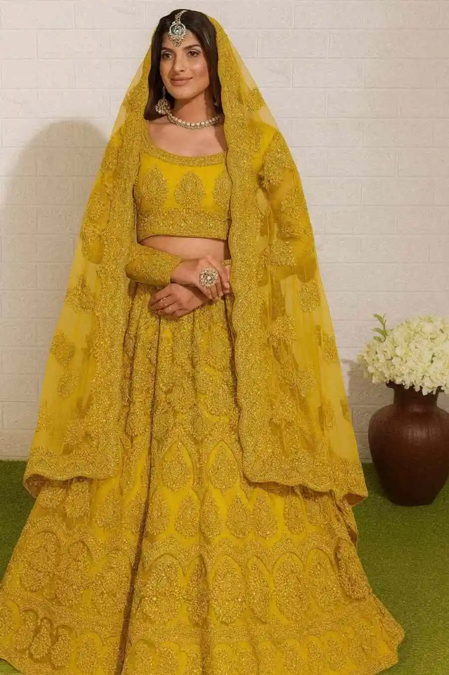DESIGNER NET EMBROIDERY WORK LEHENGA CHOLI WITH DUPATTA YELLOW