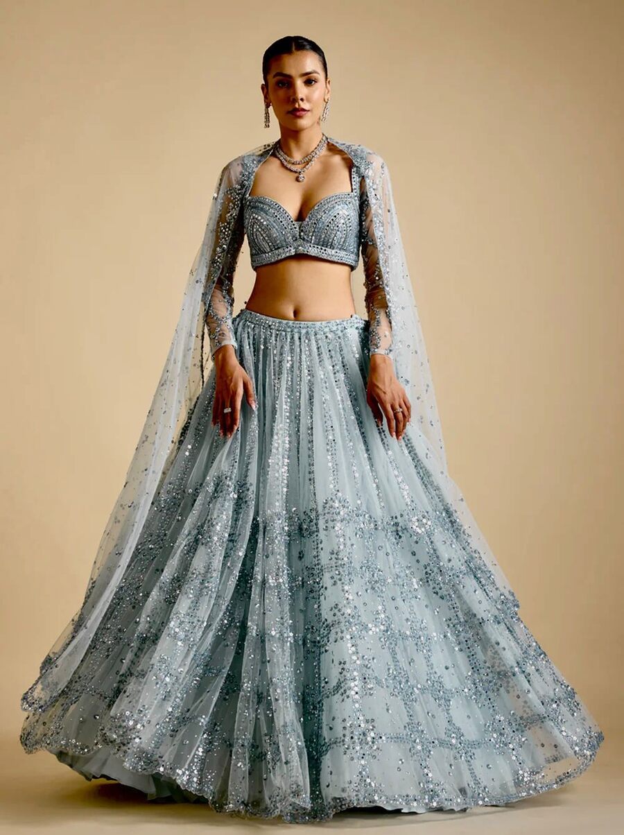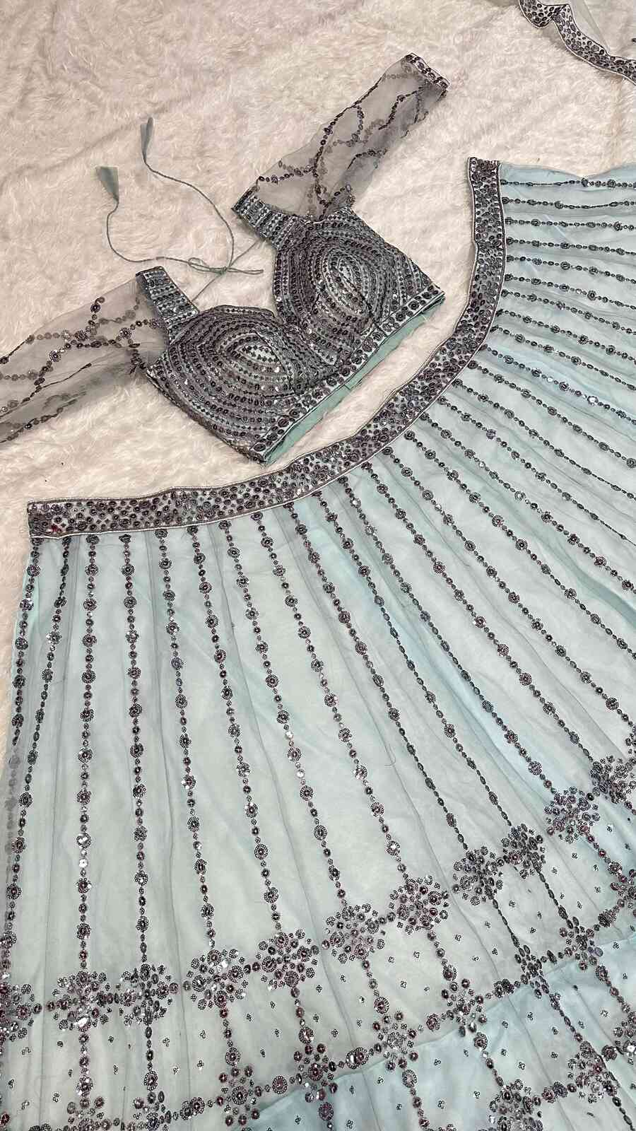 DESIGNER NET SEQUENCE WORK LEHENGA CHOLI WITH DUPATTA SKY