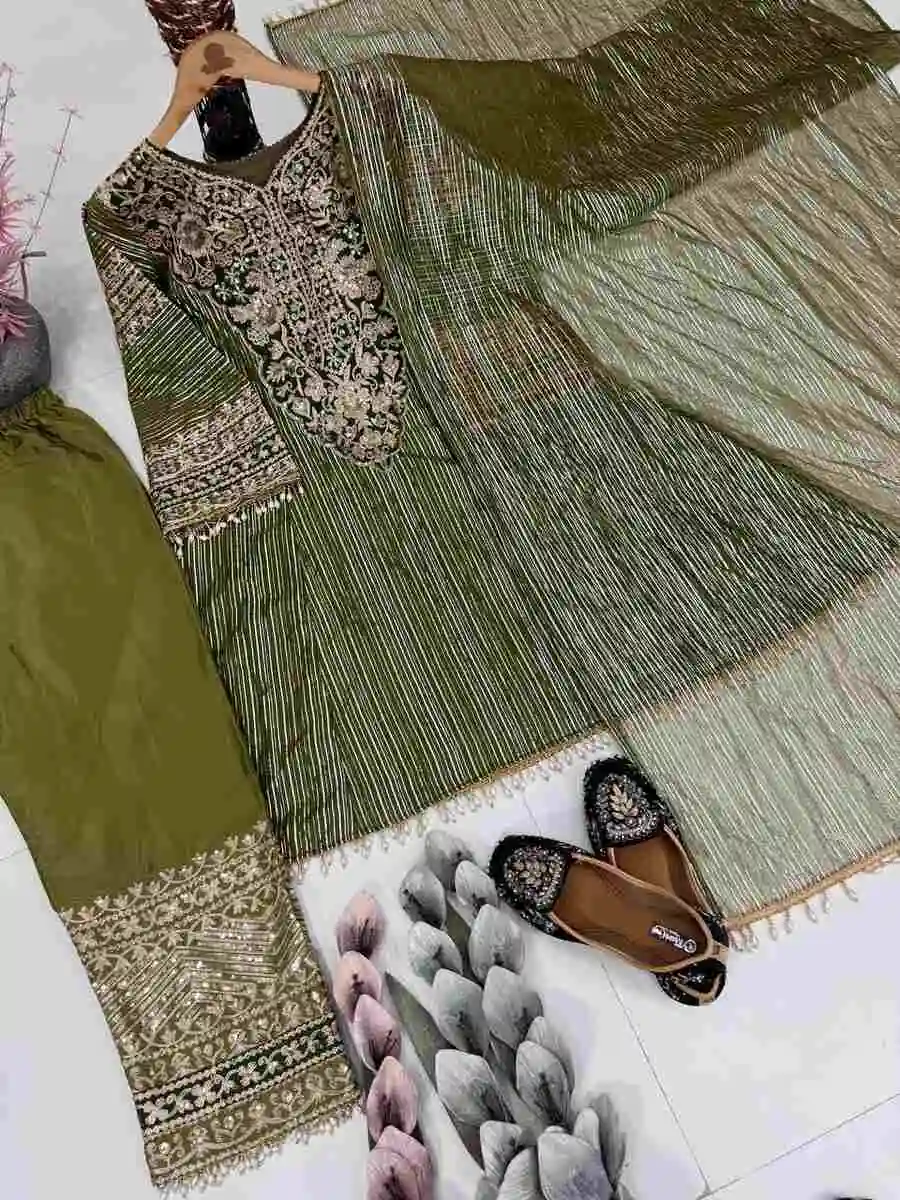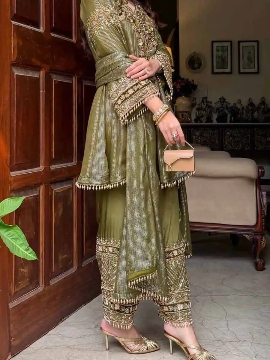 DESIGNER NYLON LINING EMBROIDERY SEQUENCE FANCY PATCH WORK TOP BOTTOM WITH DUPATTA MEHNDI