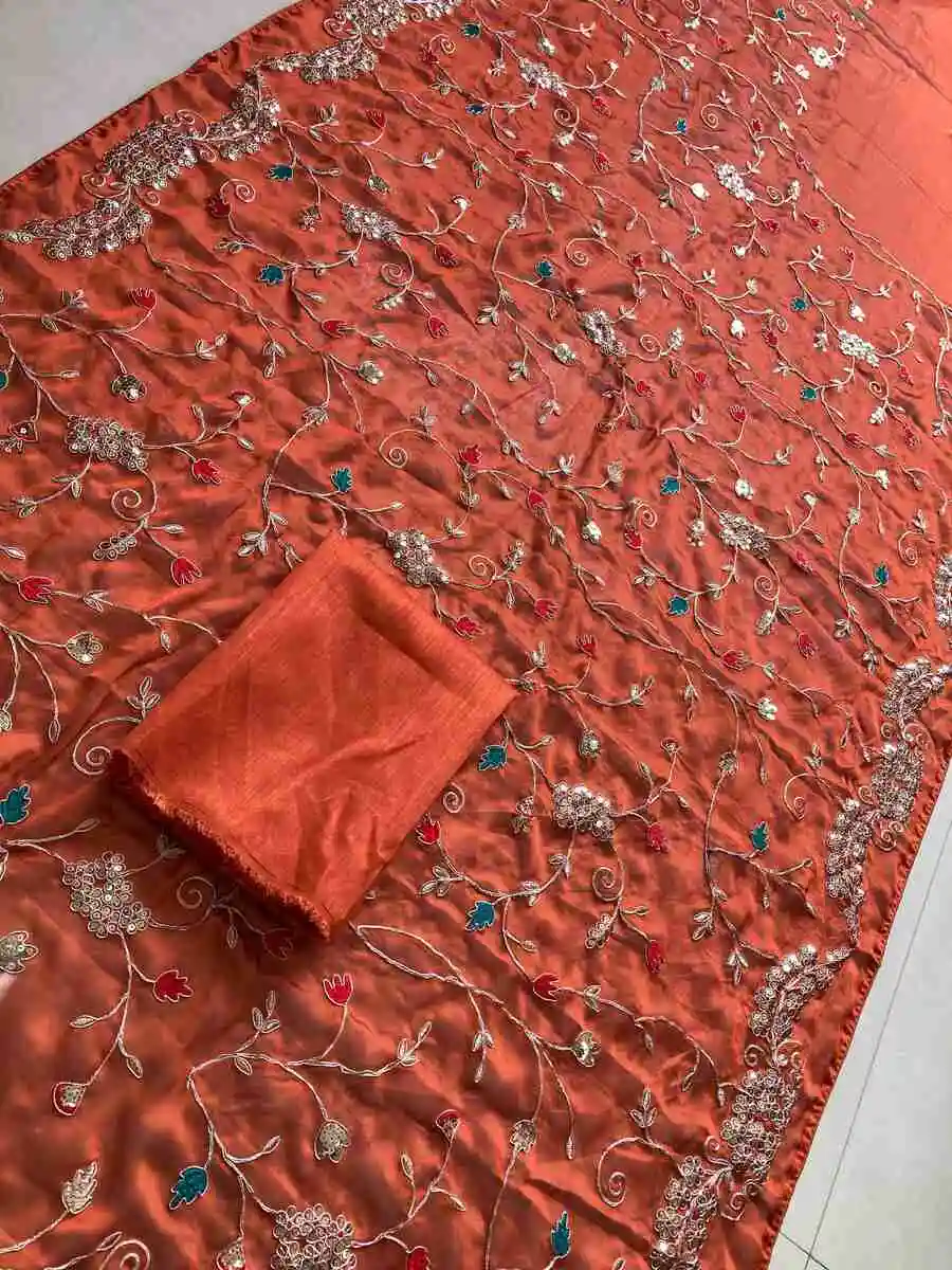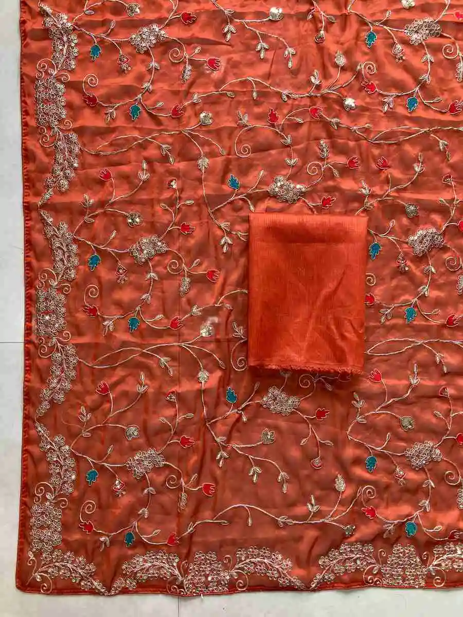 DESIGNER RANGOLI SILK CONTRAST PALLU EMBROIDERY WORK BORDER WORK SAREE WITH UNSTITCHED BLOUSE ORANGE