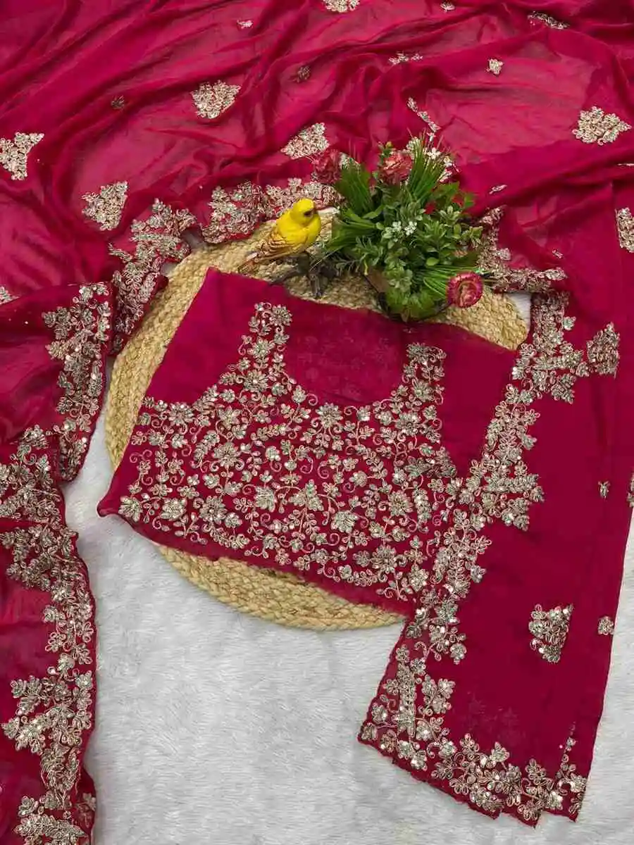 SAREE FABRIC :- PURE GEORGETTE HEAVY EMBROIDERY C PALLU WORK WITH 5MM SEQUENCE AND ALL OVER SAREE BUTTA WORK
