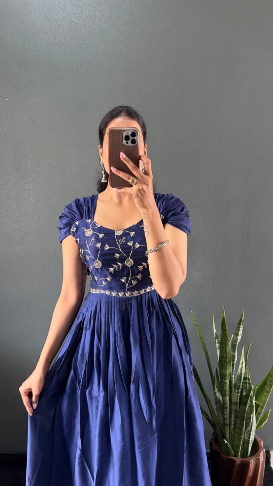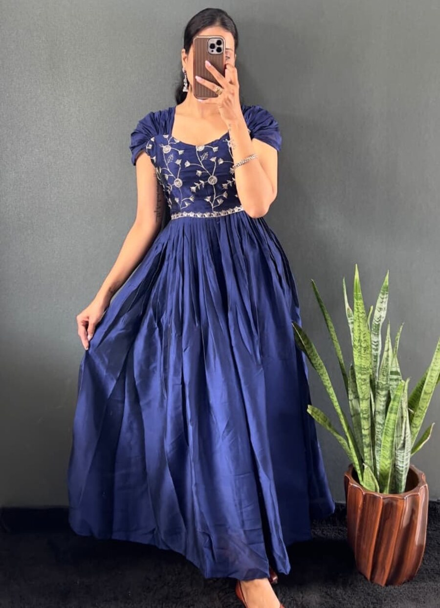 DESIGNER RANGOLI SILK MULTI-THREAD EMBROIDERY WORK ONE PIECE BLUE