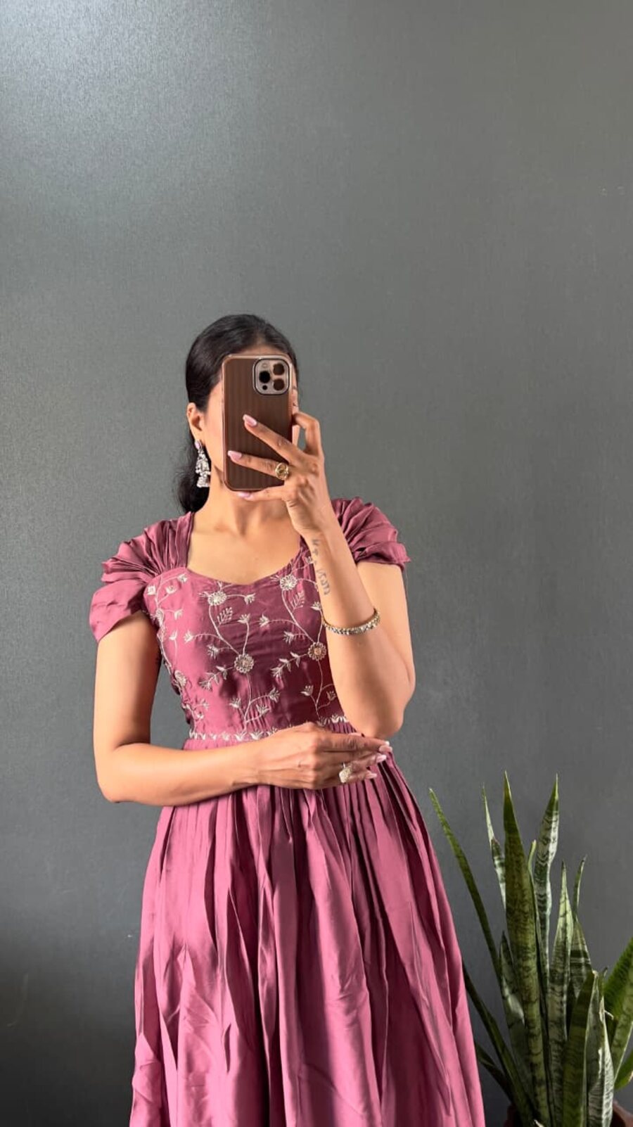 DESIGNER RANGOLI SILK MULTI-THREAD EMBROIDERY WORK ONE PIECE PEACH