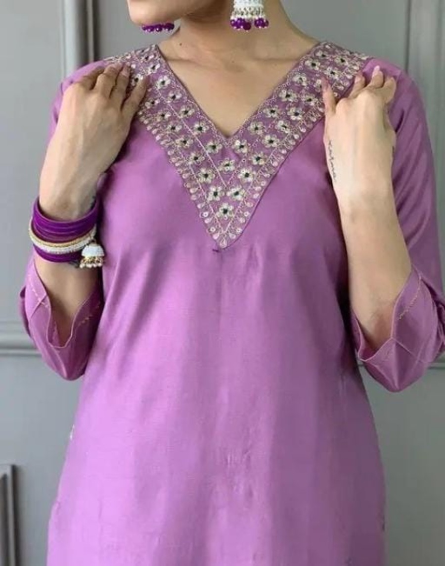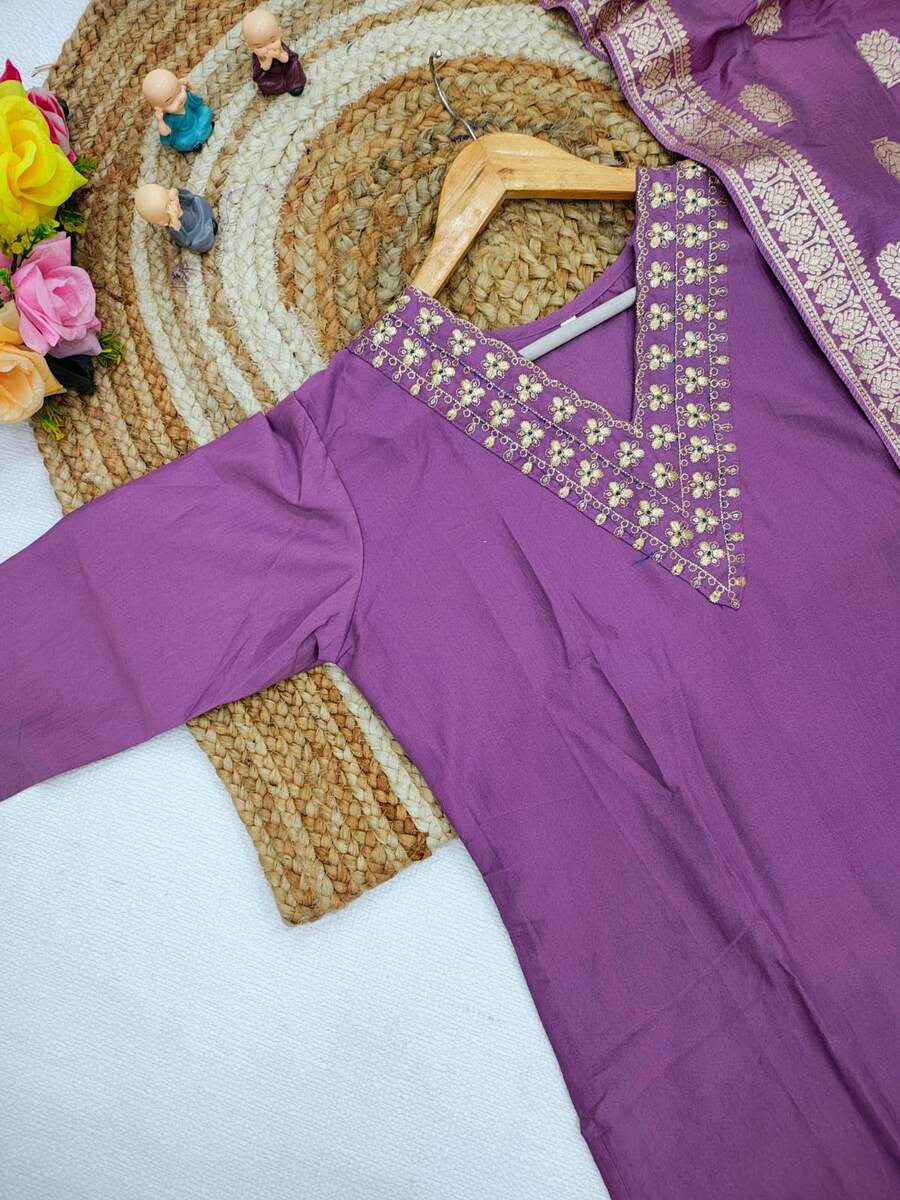 DESIGNER RAYON EMBROIDERY WORK TOP BOTTOM WITH DUPATTA LAVENDER
