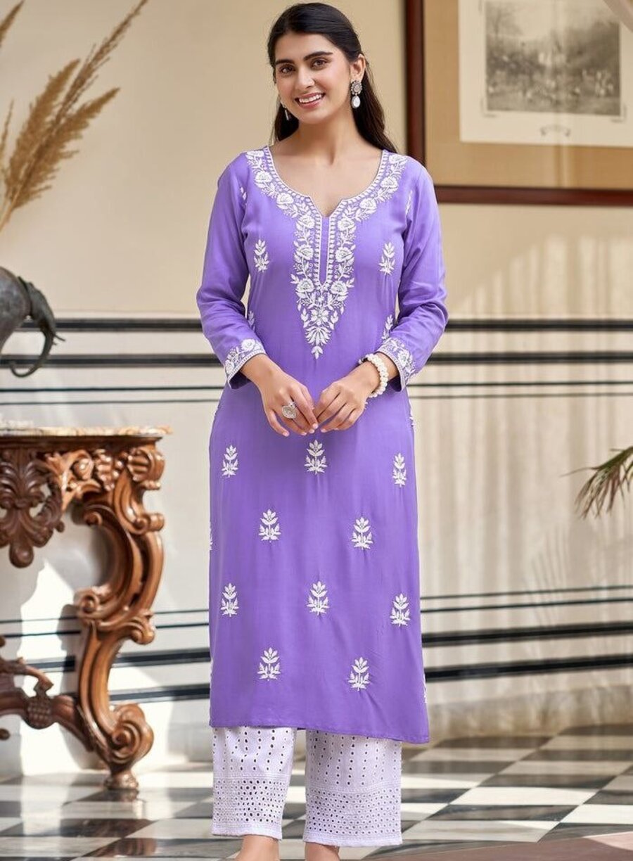 DESIGNER RAYON SEQUENCE EMBROIDERY WORK TOP BOTTOM SET PURPLE