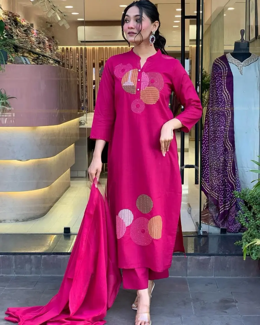 DESIGNER ROMAN EMBROIDERY WORK TOP BOTTOM WITH DUPATTA PINK
