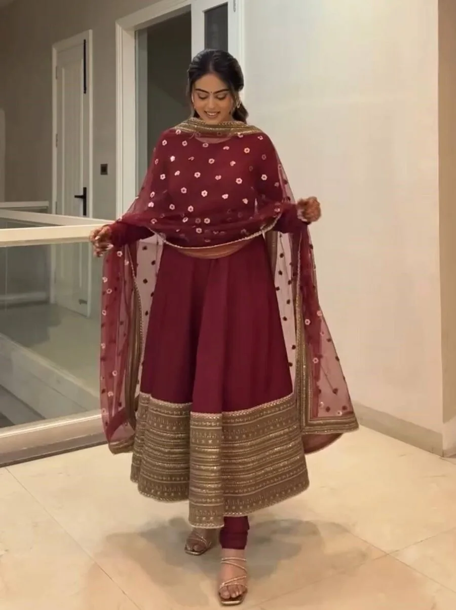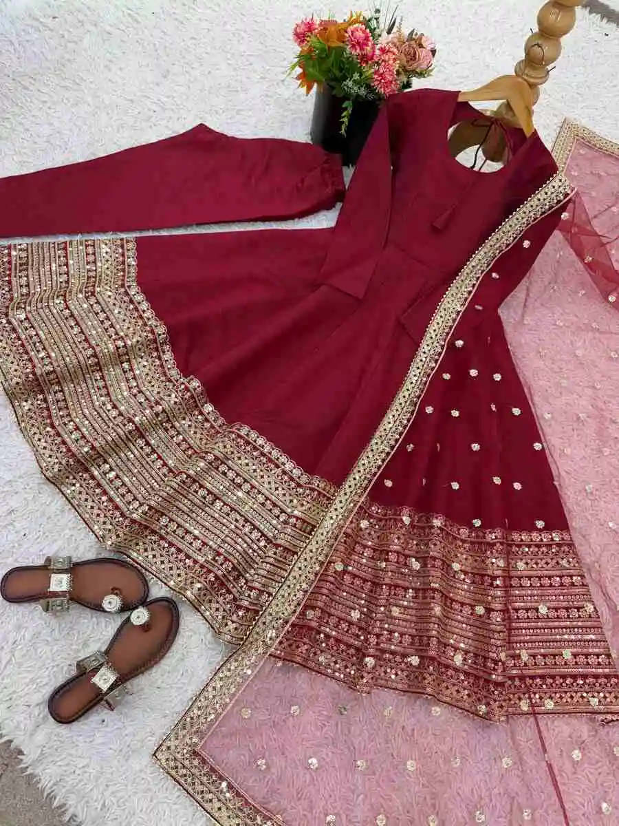 DESIGNER ROMAN SILK CODING SEQUENCE WORK GOWN BOTTOM WITH DUPATTA MAROON