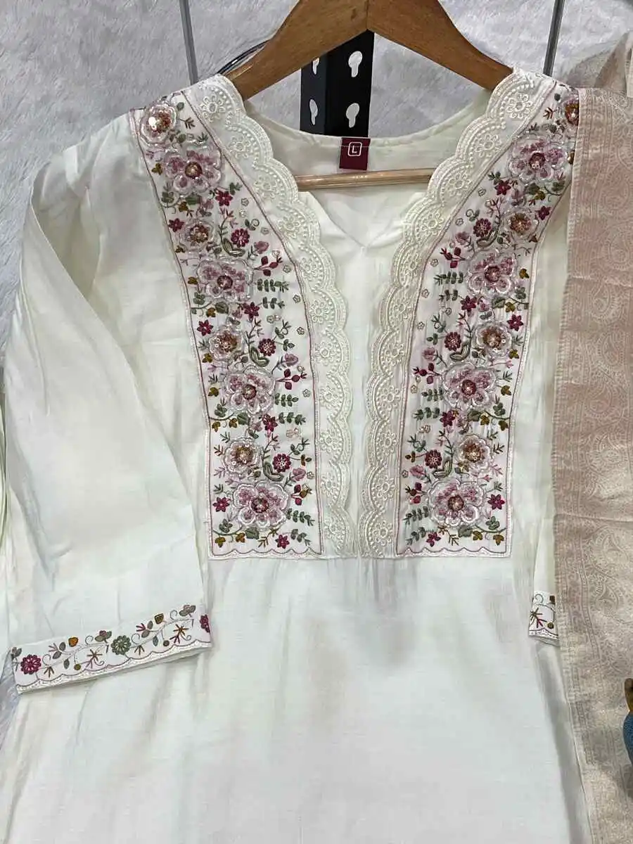 DESIGNER ROMAN SILK MULTI EMBROIDERY SEQUENCE WITH HAND WORK TOP BOTTOM WITH DUPATTA WHITE