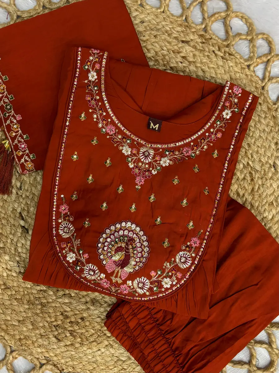 DESIGNER ROMAN SILK MULTI EMBROIDERY THREAD WORK TOP BOTTOM WITH DUPATTA ORANGE