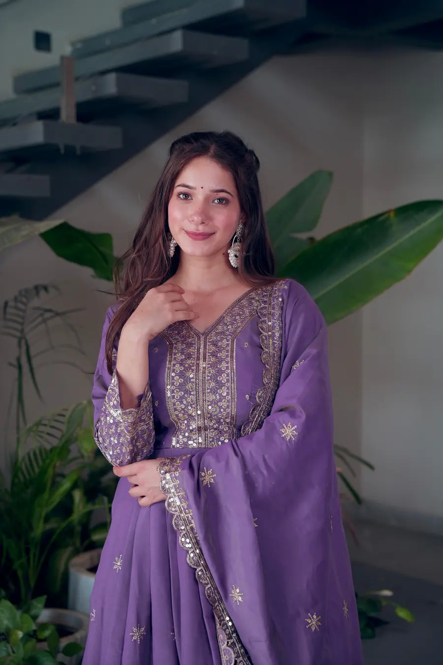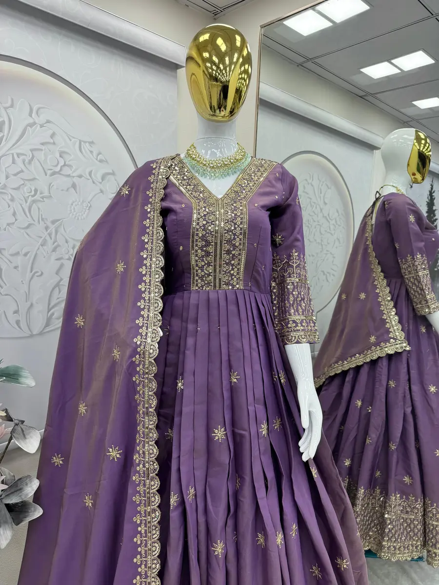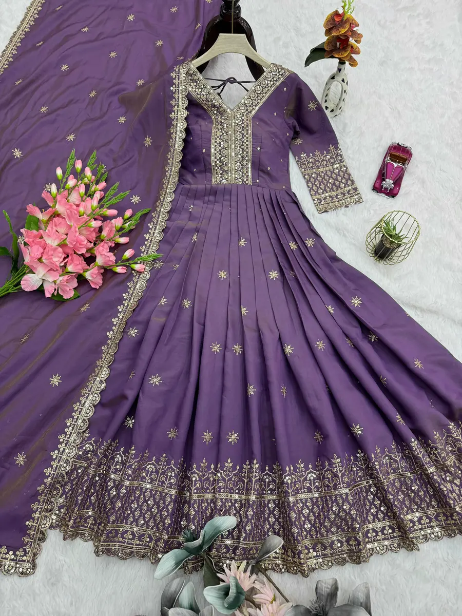 DESIGNER SHIMMER SILK EMBROIDERY SEQUENCE WORK GOWN WITH DUPATTA PURPLE