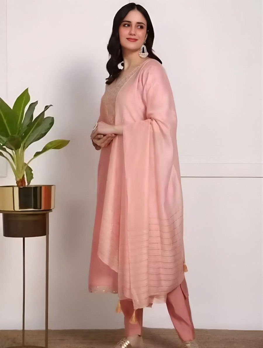 DESIGNER SLUB COTTON EMBROIDERY WORK TOP BOTTOM WITH DUPATTA BABY PINK