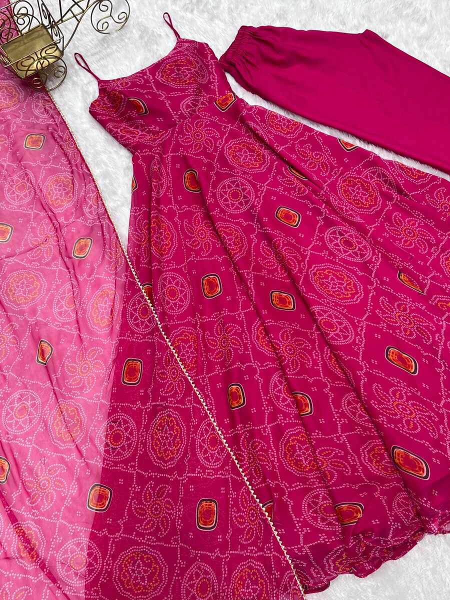 DESIGNER SOFT CHIFFON BANDHEJ ANARKALI PENT WITH DUPATTA PINK