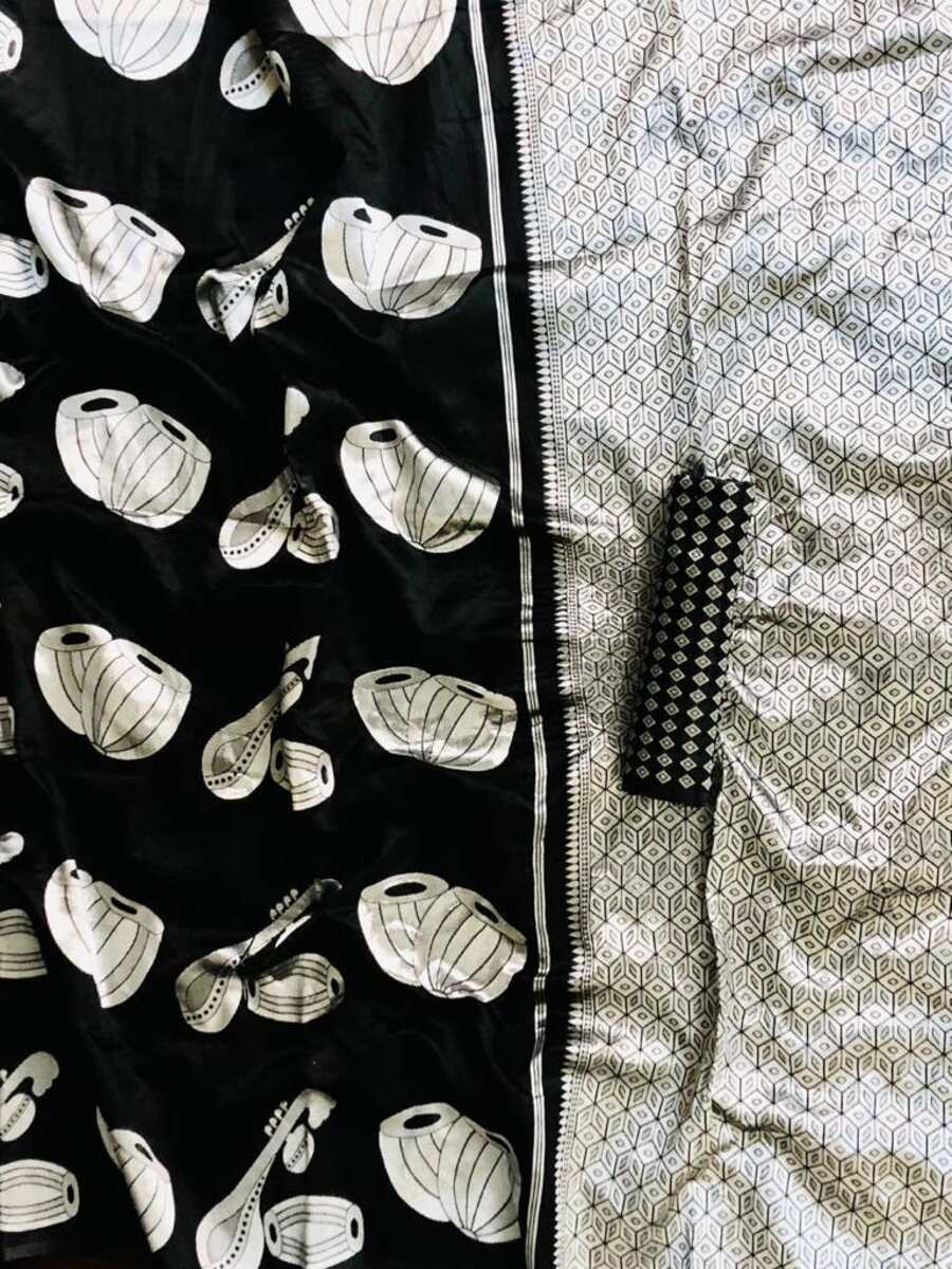 DESIGNER SOFT LICHI SILK JACQUARD WORK SAREE WITH UNSTITCHED BLOUSE BLACK