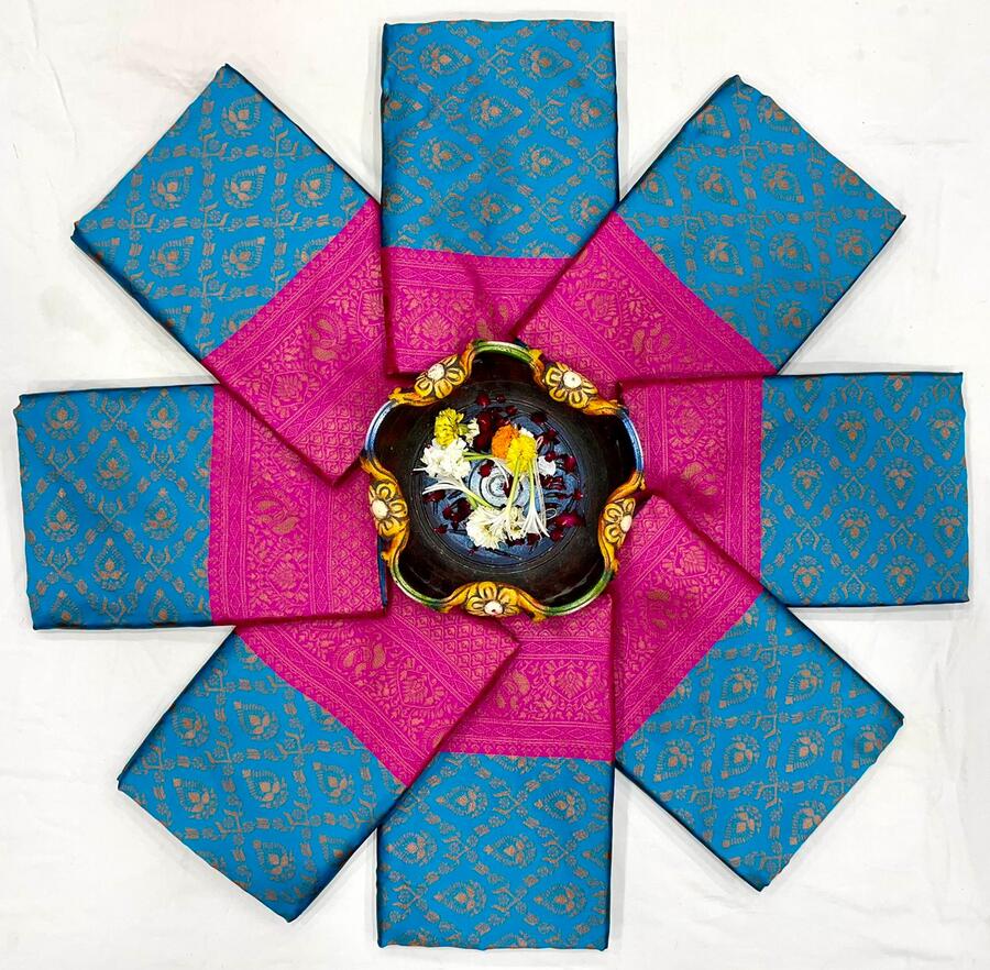 DESIGNER SOFT LICHI SILK JACQUARD WORK SAREE WITH UNSTITCHED BLOUSE BLUE