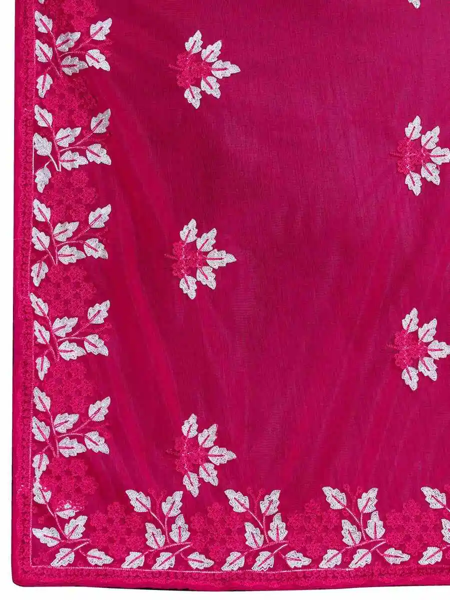 DESIGNER SOFT NET CONTRAST PALLU CHIKANKARI EMBROIDERY WORK SAREE WITH UNSTITCHED BLOUSE RANI