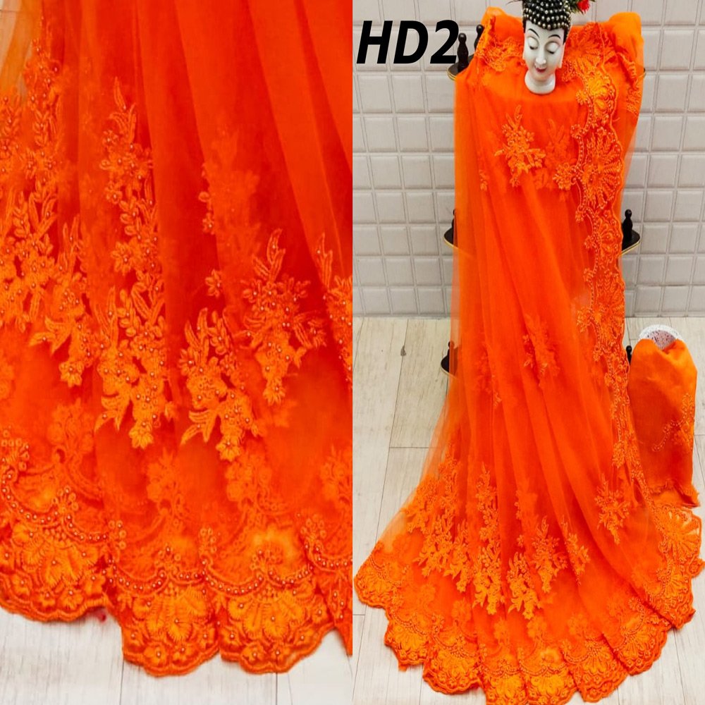 SAREE FABRIC: NET WITH EMBROIDERY HEAVY DESIGN WORK WITH PEARL DIAMOND STONE