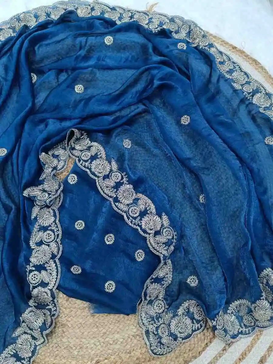 FABRIC : MONO BANGLORY SILK WITH HEAVY EMBROIDERY FRONT AND BACK BOTH SIDE WORK