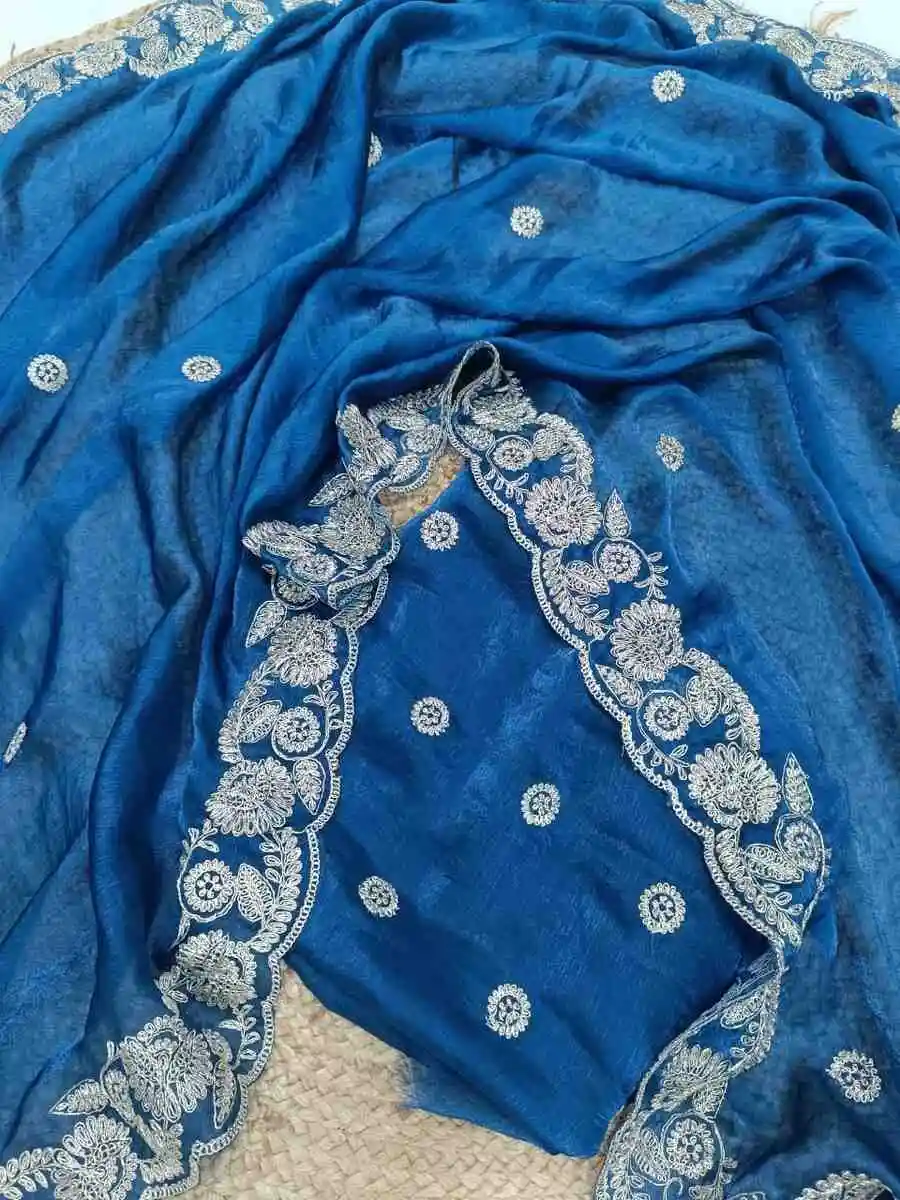 BLOUSE : PREMIUM DIAMOND CHINON SILK WITH HEAVY EMBROIDERY WORK UNSTITCHED BLOUSE