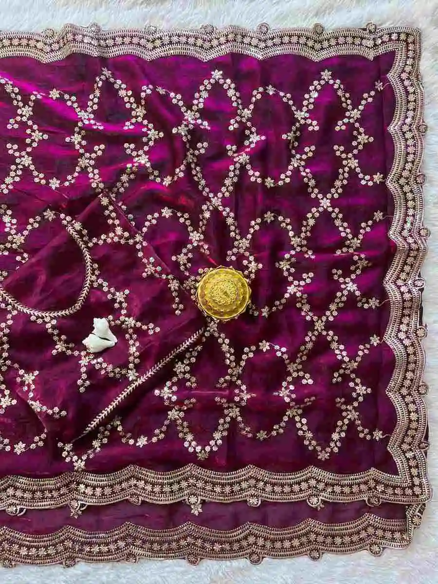 DESIGNER SPACE SILK CUT WORK AND RICH FLOWER SEQUENCE EMBRODERY WORK SAREE WITH UNSTITCHED BLOUSE WINE