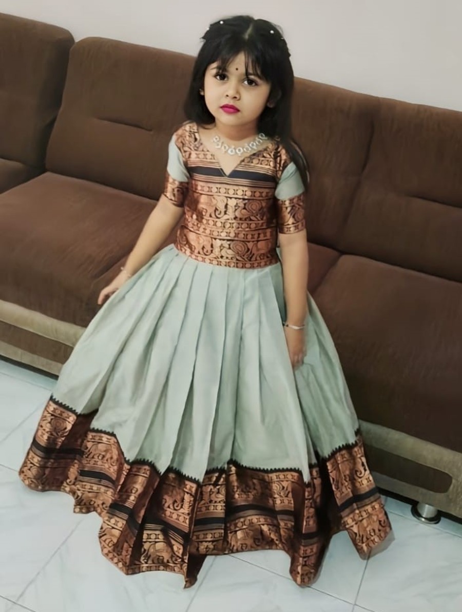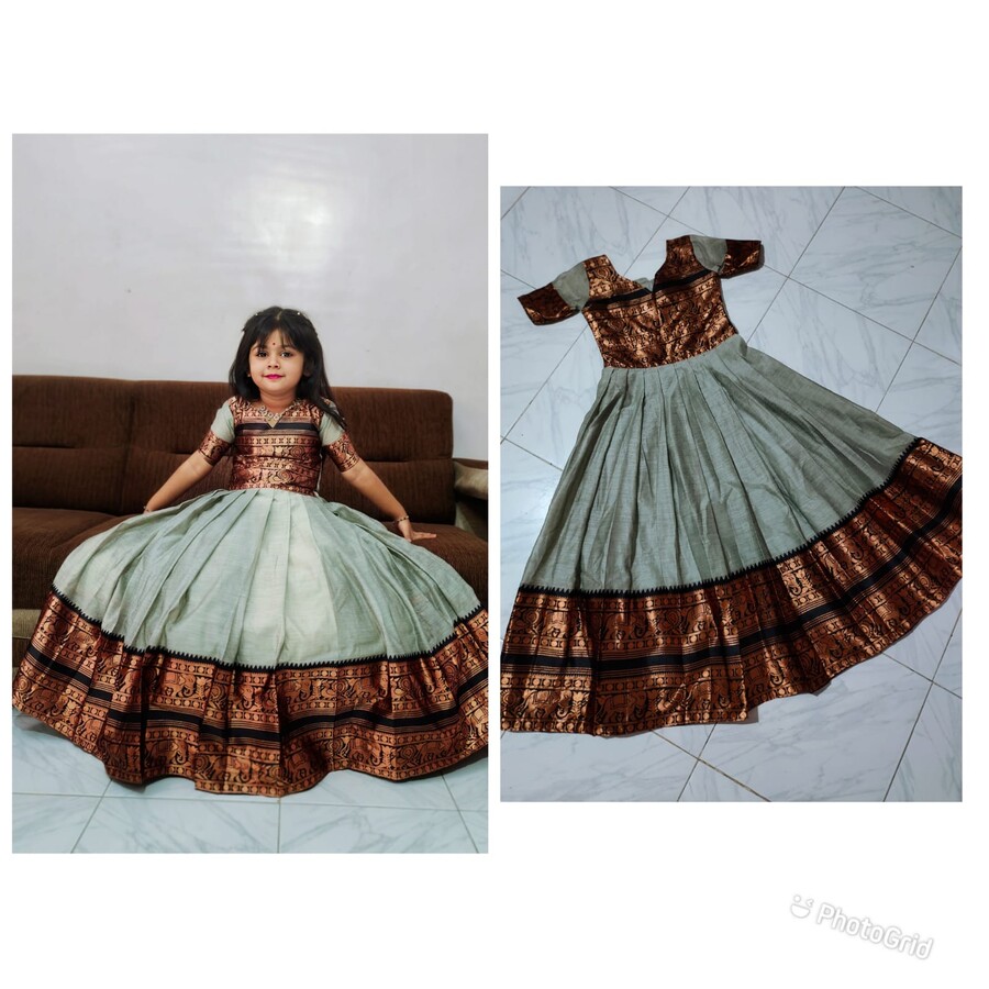DESIGNER SPUN COTTON ZARI WEAVING WORK KID’S GOWN PISTA