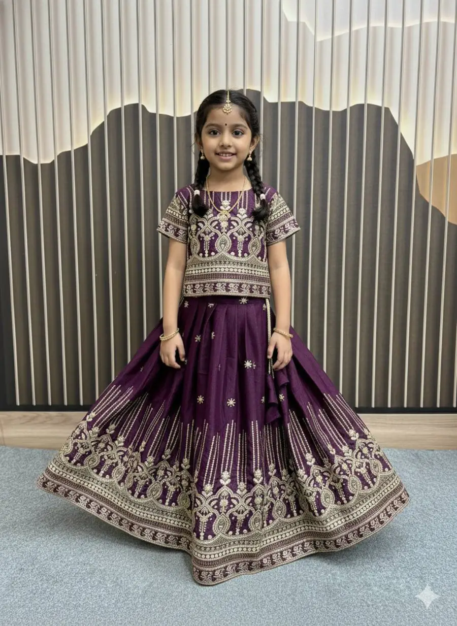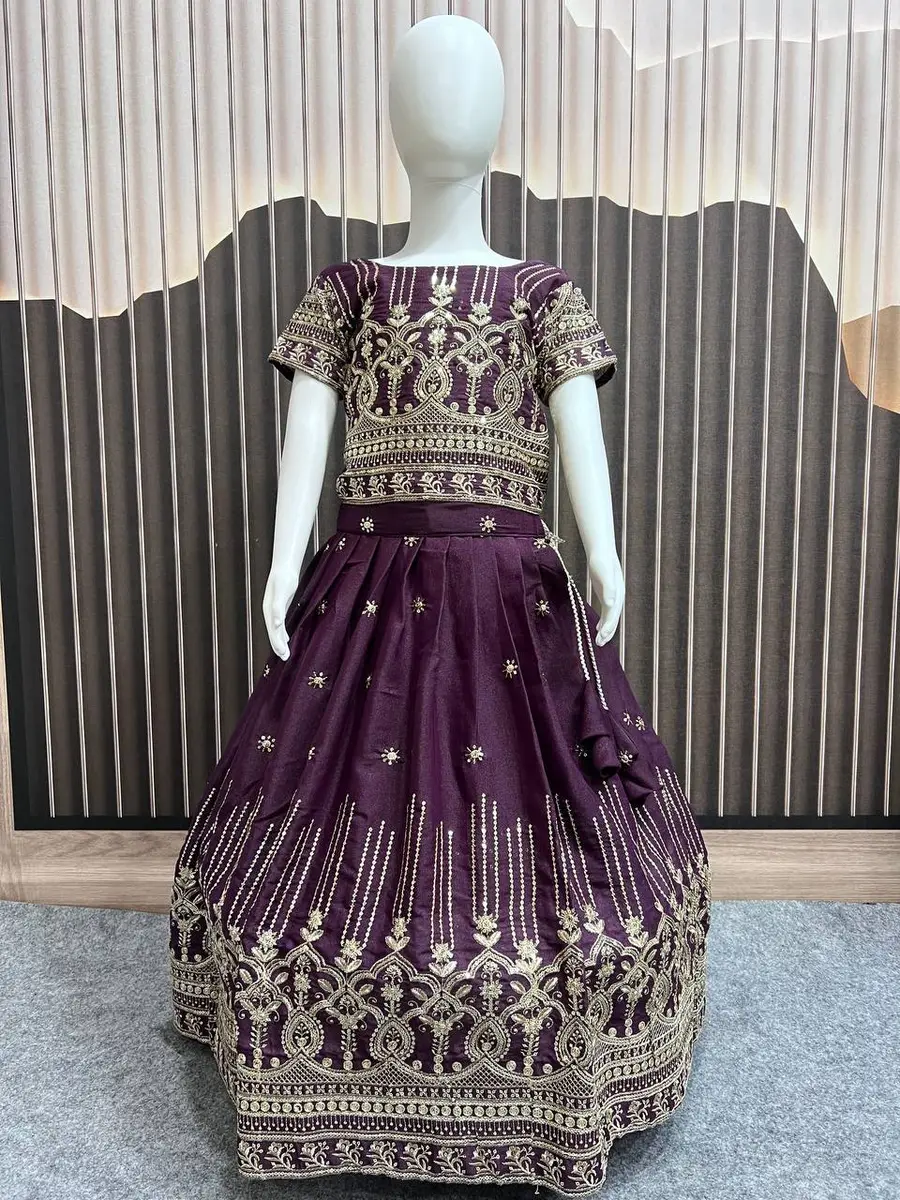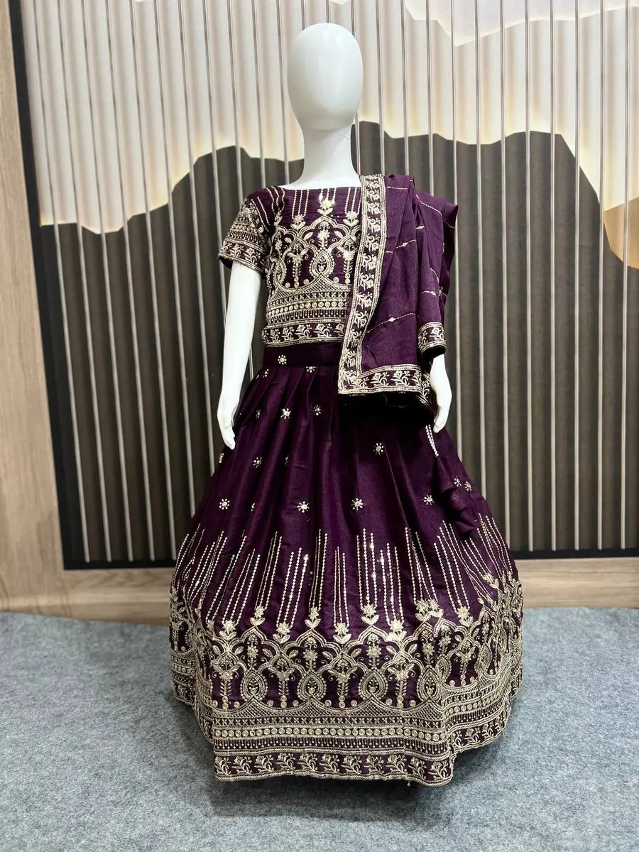 DESIGNER STAR GEORGETTE EMBROIDERY & SEQUENCE WORK KID’S LEHENGA CHOLI WITH DUPATTA WINE