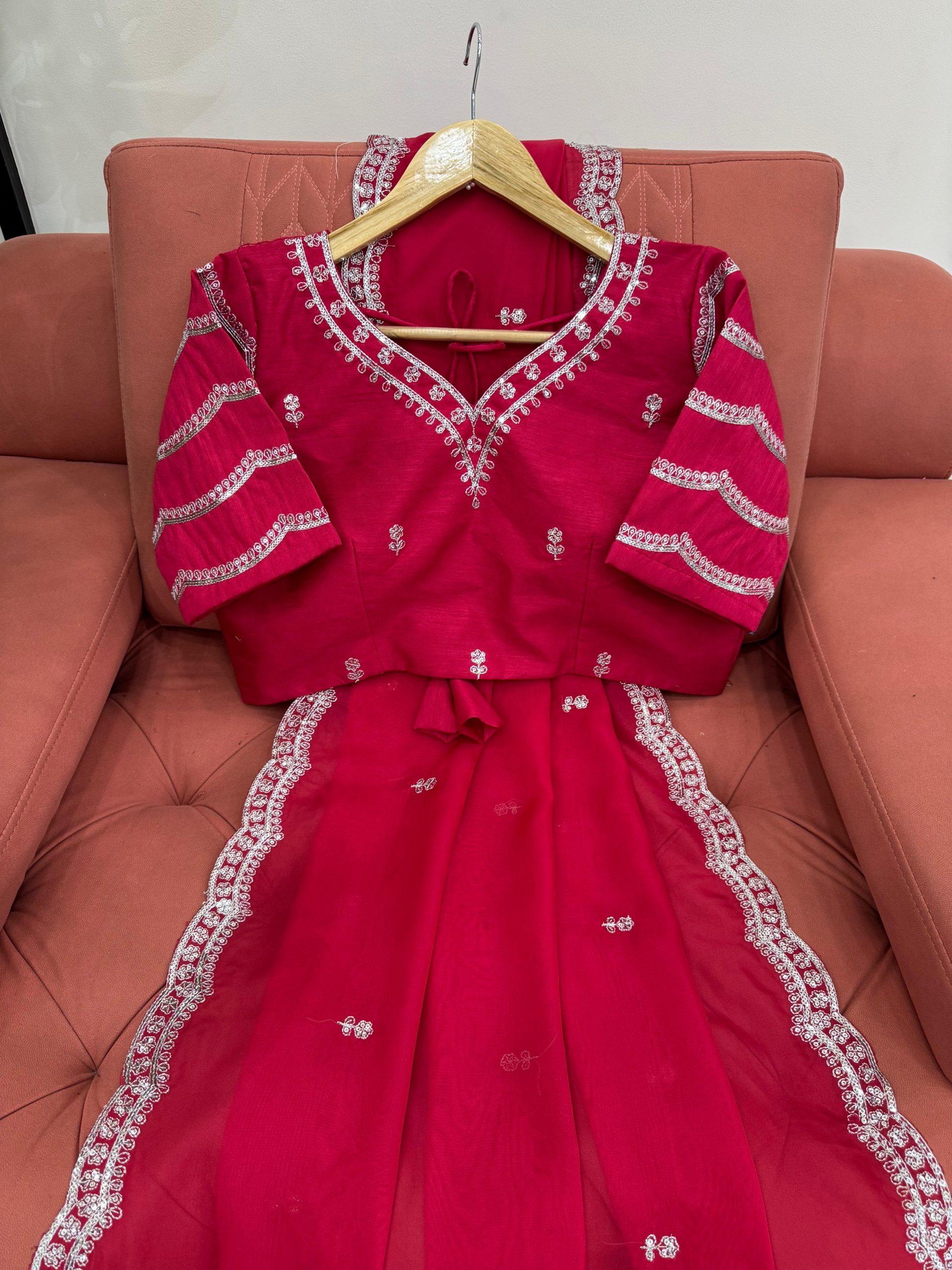 BLOUSE : PREMIUM DIAMOND CHINON SILK WITH HEAVY EMBROIDERY WORK UNSTITCHED BLOUSE