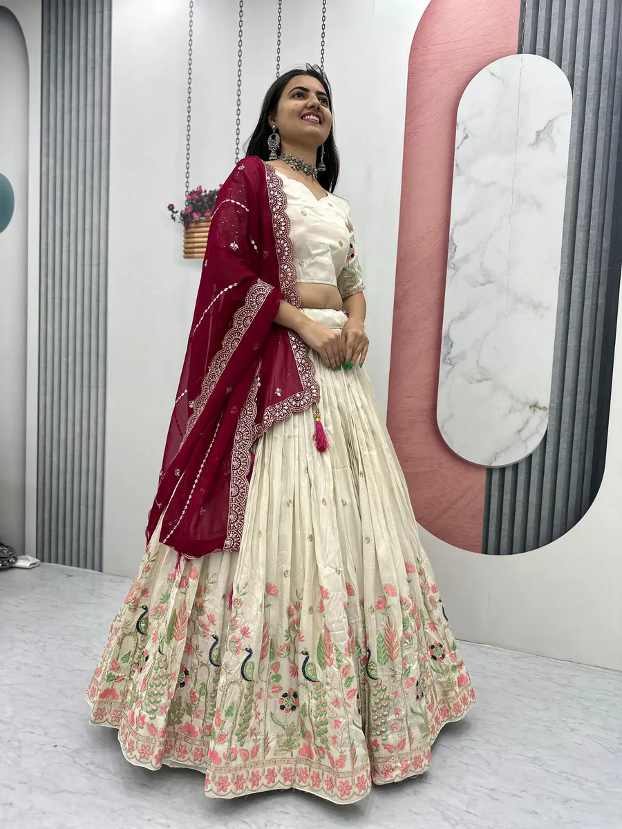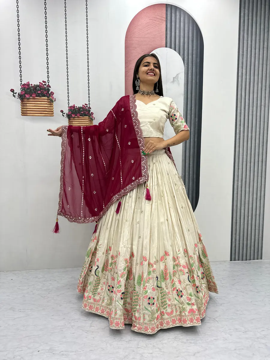 DESIGNER TISSUE SILK THREAD AND SEQUENCE WORK LEHENGA CHOLI WITH DUPATTA MAROON