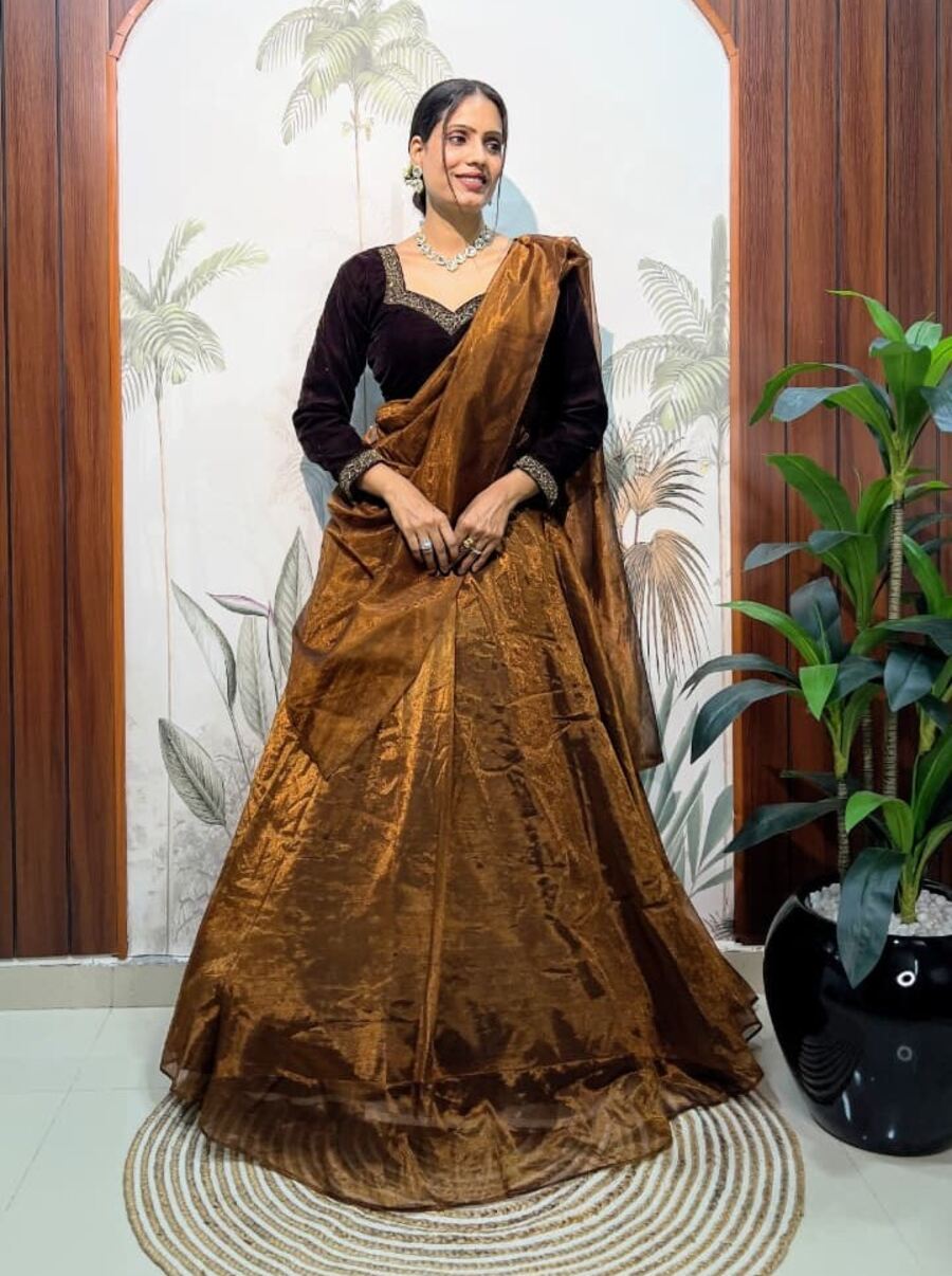 DESIGNER VELVET CUT DANA HAND WORK CHOLI WITH TWILL NET LEHENGA AND DUPATTA CHIKU