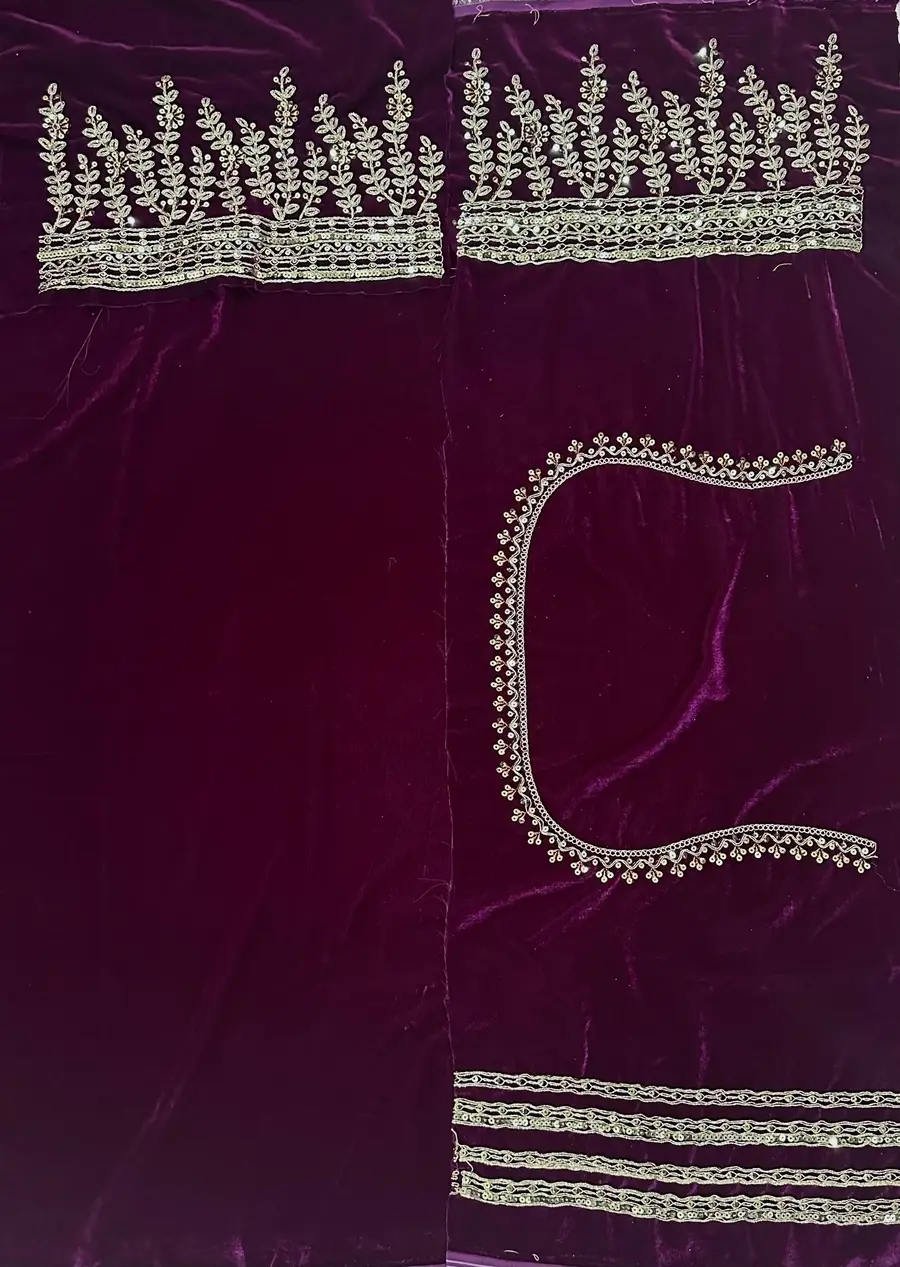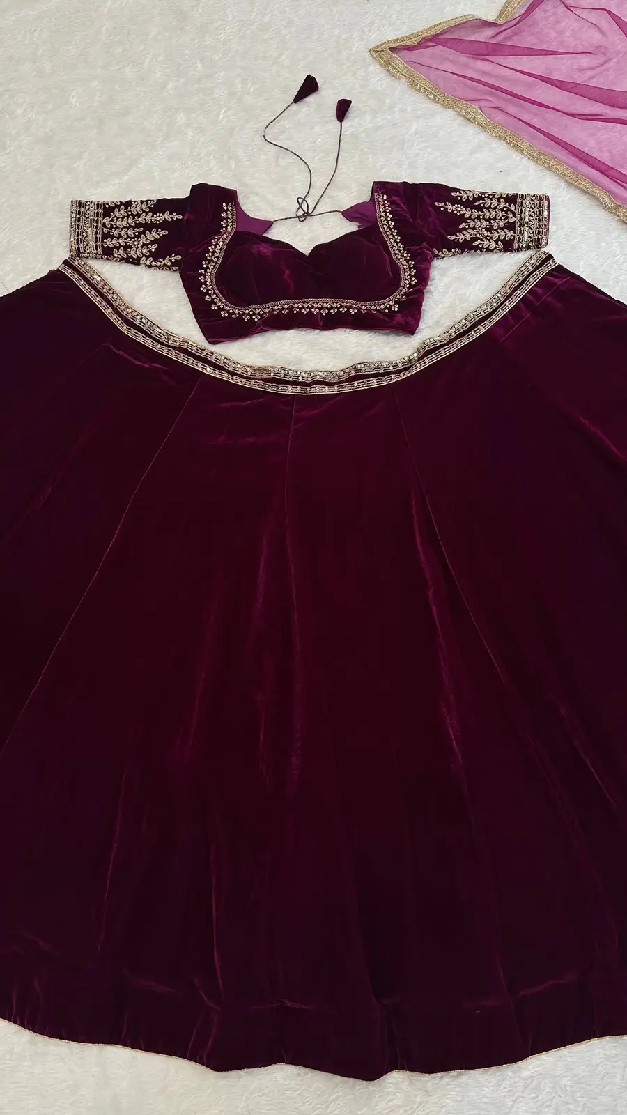 DESIGNER VELVET DORI & SEQUENCE BORDER WORK LEHENGA CHOLI WITH DUPATTA WINE