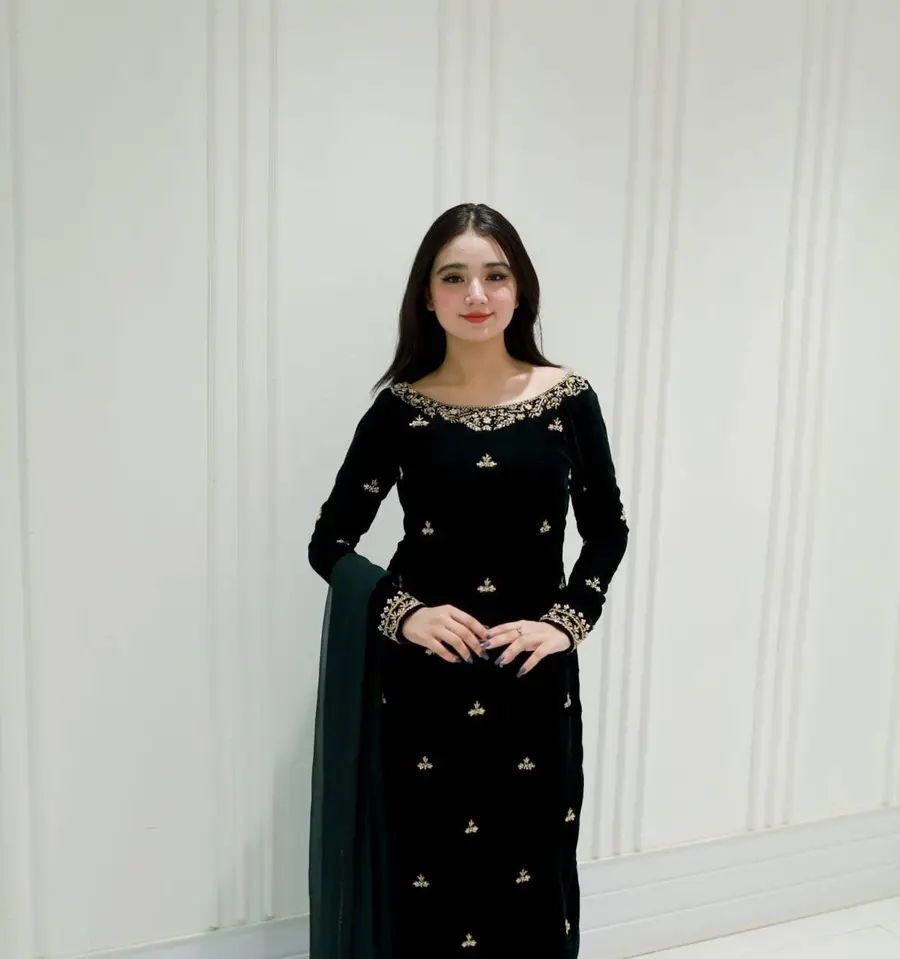 DESIGNER VELVET SEQUENCE EMBROIDERY WORK TOP BOTTOM WITH DUPATTA GREEN