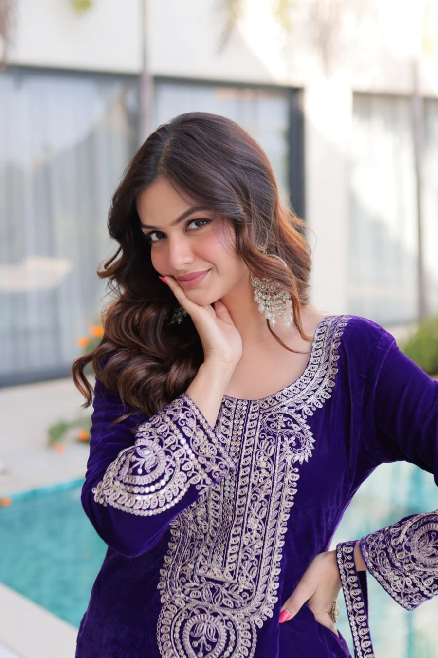 DESIGNER VELVET ZARI CODING EMBROIDERY WORK TOP PENT WITH BATWA PURPLE