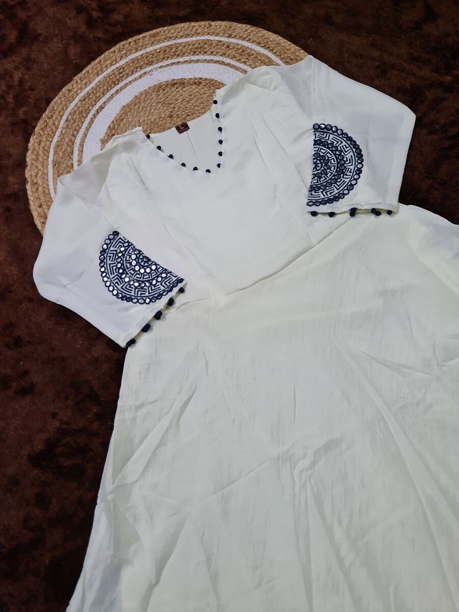 KURTI FABRIC :- 14KG REYON WITH EMBROIDERY DESIGN WORK FULL STITCH NAYRA PATTERN KURTI