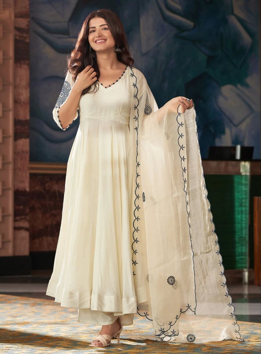 DESIGNER VHICHITRA SILK SEQUENCE EMBROIDERY WORK TOP BOTTOM WITH DUPATTA WHITE