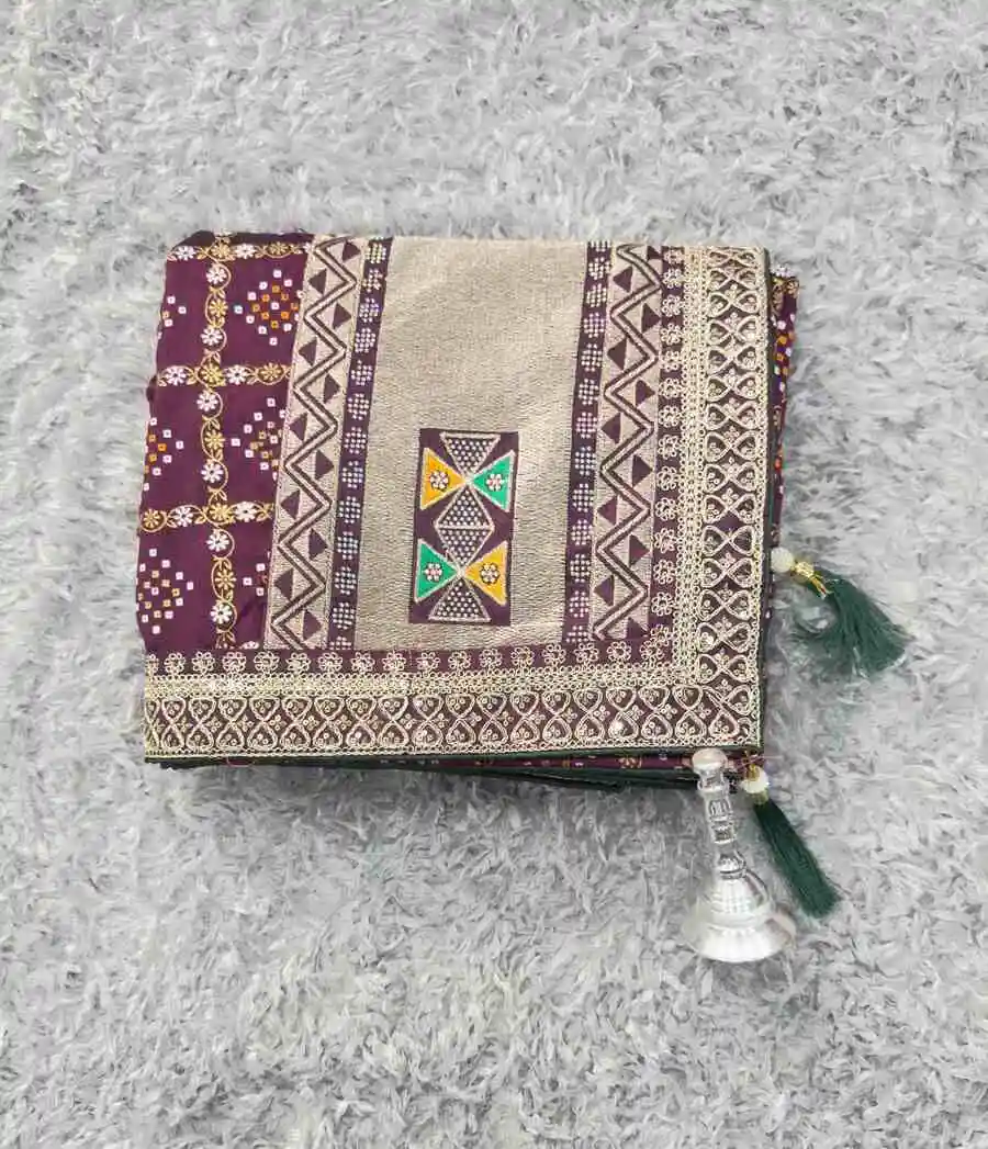 DESIGNER VICHITRA FOIL PRINT EMBROIDERY THREAD & SEQUENCE WORK AND HOT FIX DIMOND WORK SAREE WITH UNSTITCHED BLOUSE WINE