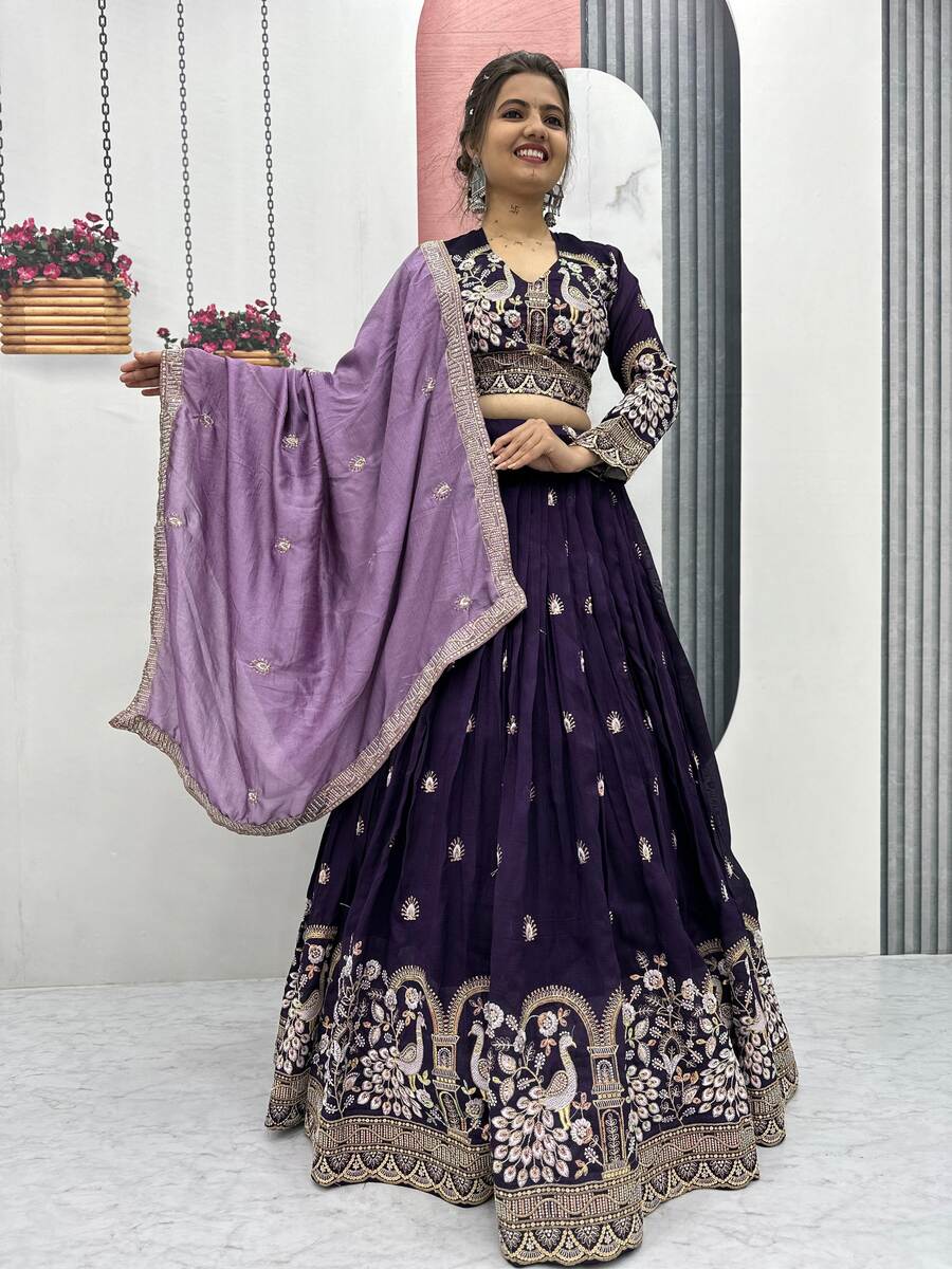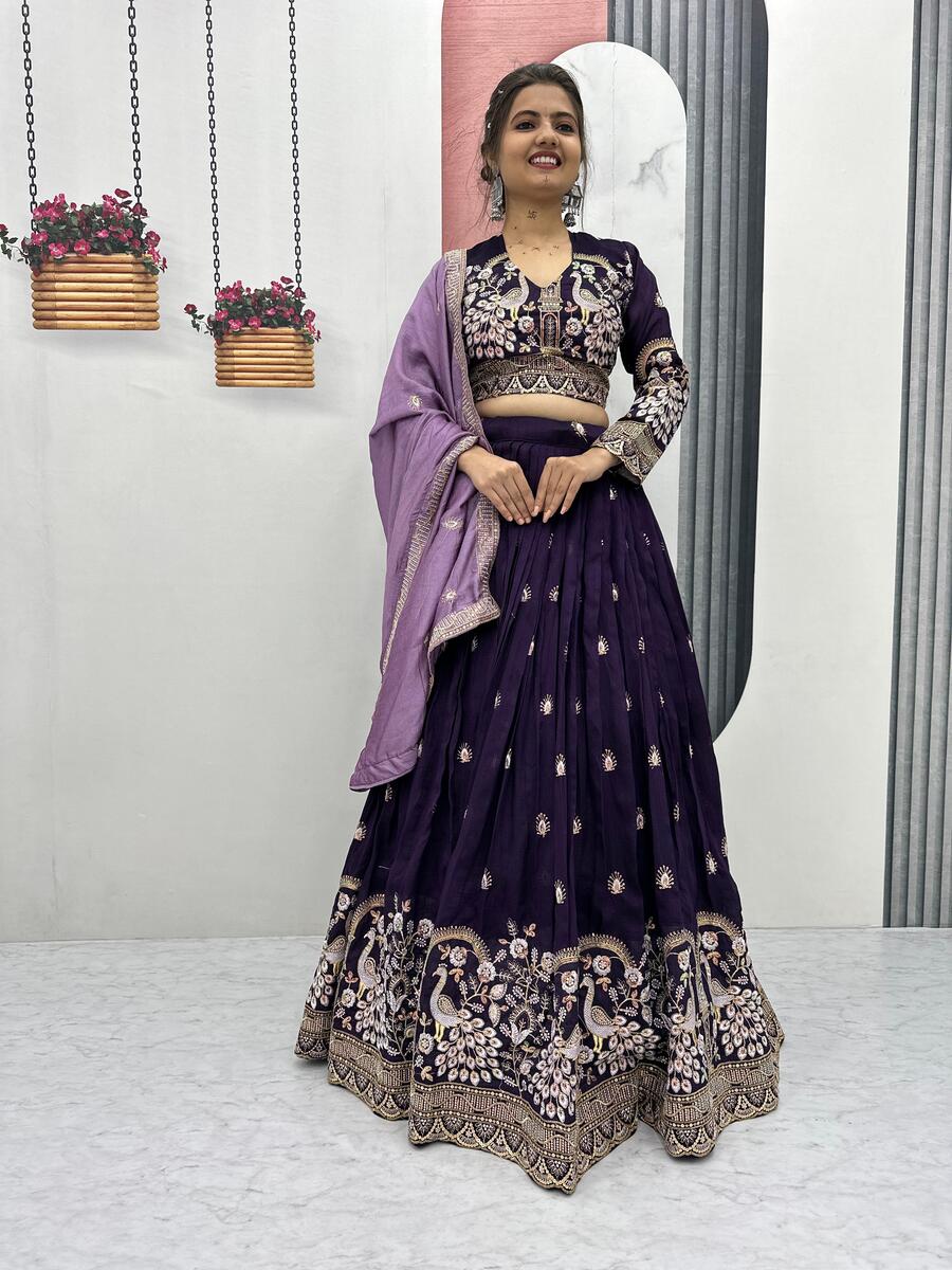 DESIGNER VICHITRA SILK EMBROIDERY THREAD & SEQUENCE WORK LEHENGA CHOLI WITH DUPATTA LAVENDER