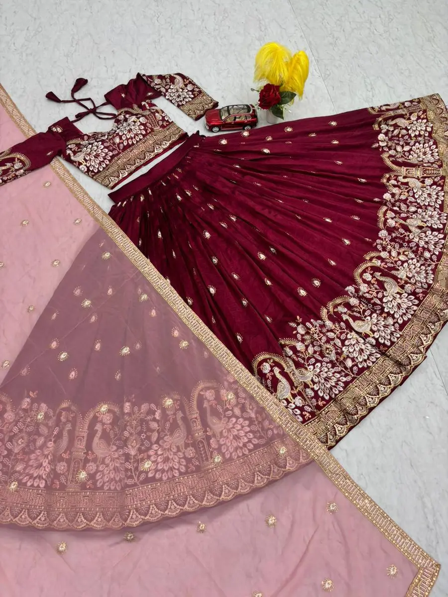 DESIGNER VICHITRA SILK EMBROIDERY THREAD & SEQUENCE WORK LEHENGA CHOLI WITH DUPATTA MAROON