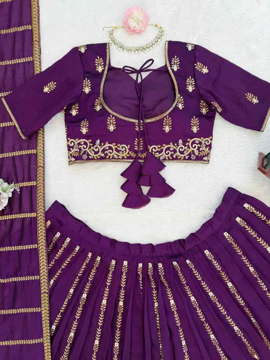 DESIGNER VICHITRA SILK THREAD WITH SEQUENCE WORK LEHENGA CHOLI WITH DUPATTA PURPLE
